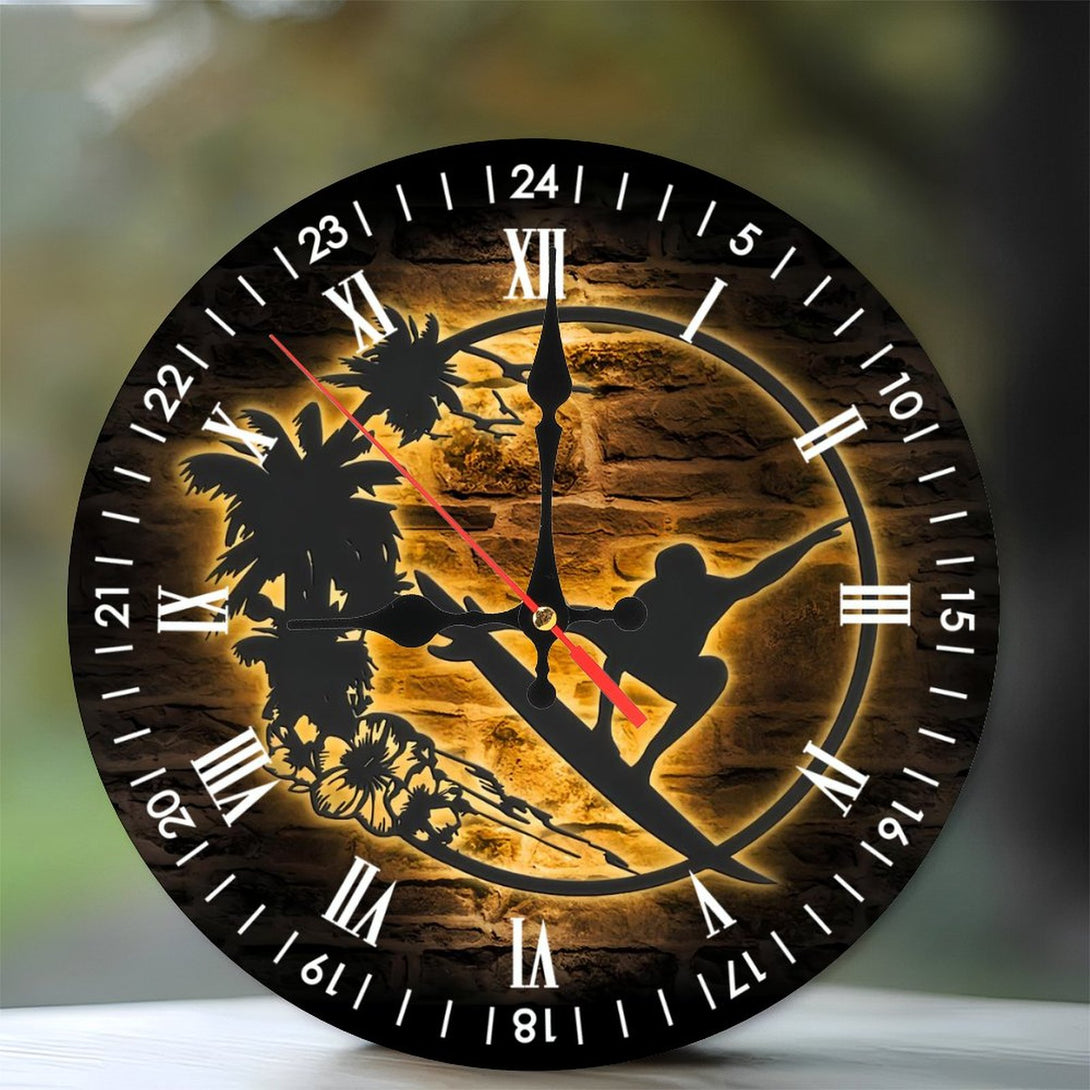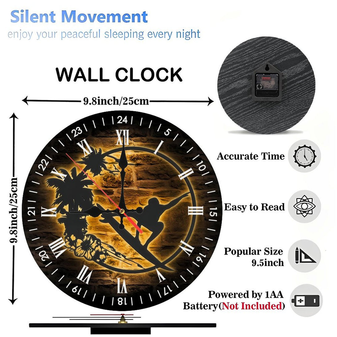 ,Wave Surfing Glass Wall Clocks,Surfer Riding Wave Glass Wall Clocks, Home Decor Surfboard Decoration Birthday Christmas Housewarming Gift