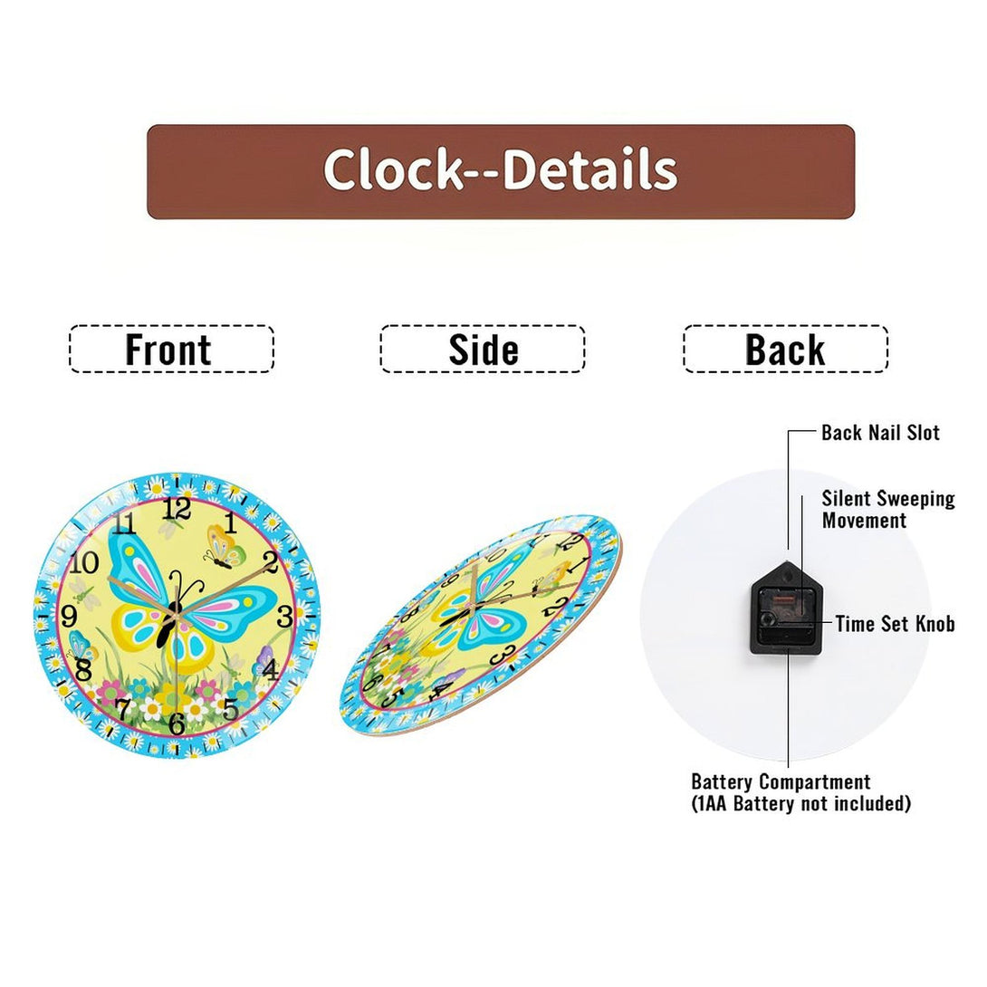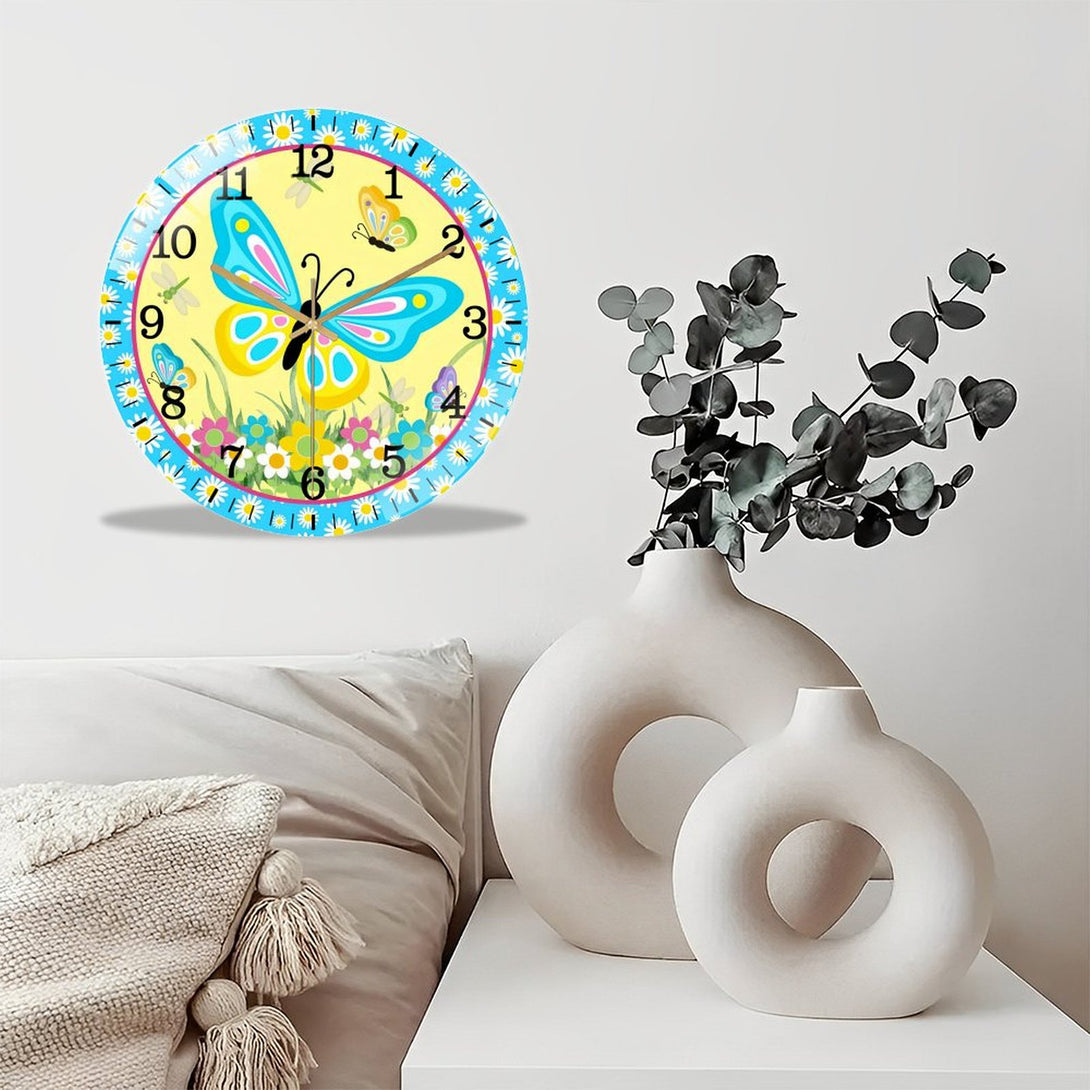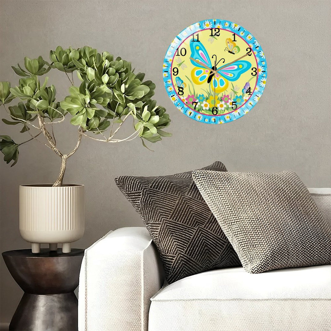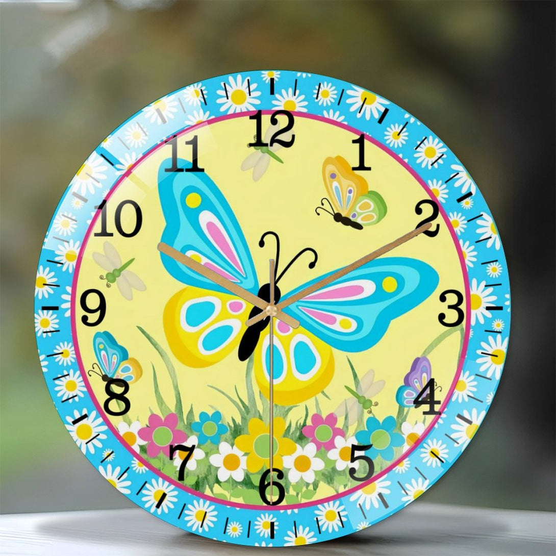 Welcome Spring Summer Glass Wall Clock ,Butterfly Wreath Wall Clock for Homes, Bars, Offices, Man Caves, Garages, And Living Rooms. Also Makes A Great Gift.,12×12inch(30×30cm)