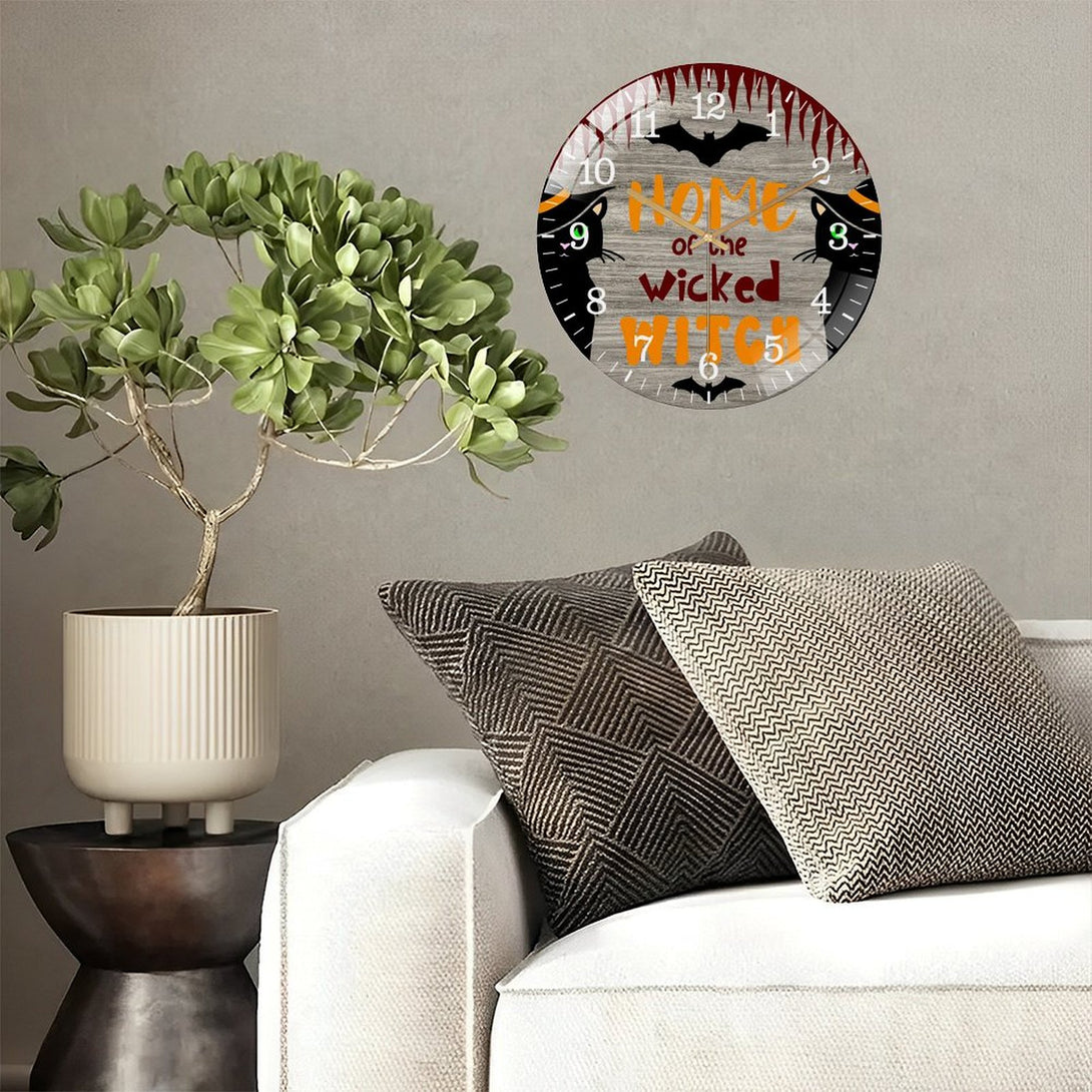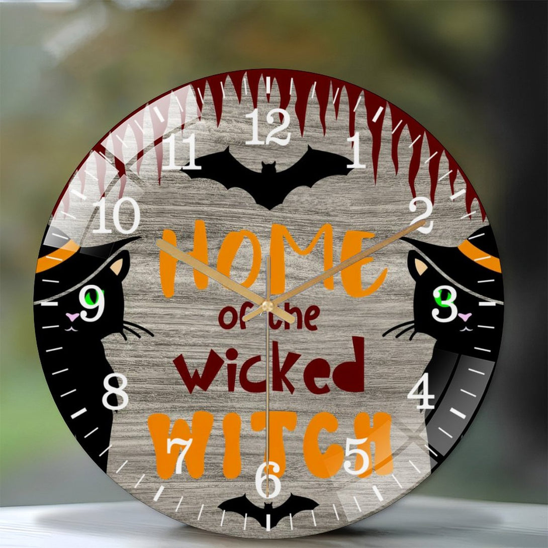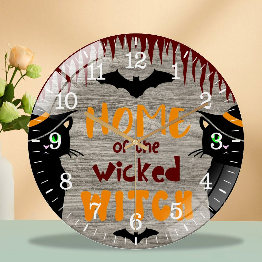 Decor Wall Clocks: Wicked Witch Glass Wall Clock, Hallo-ween Decor Wall Clock for Homes, Bars, Offices, Man Caves, Garages, And Living Rooms. Also Makes A Great Gift. Style 12×12inch(30×30cm)