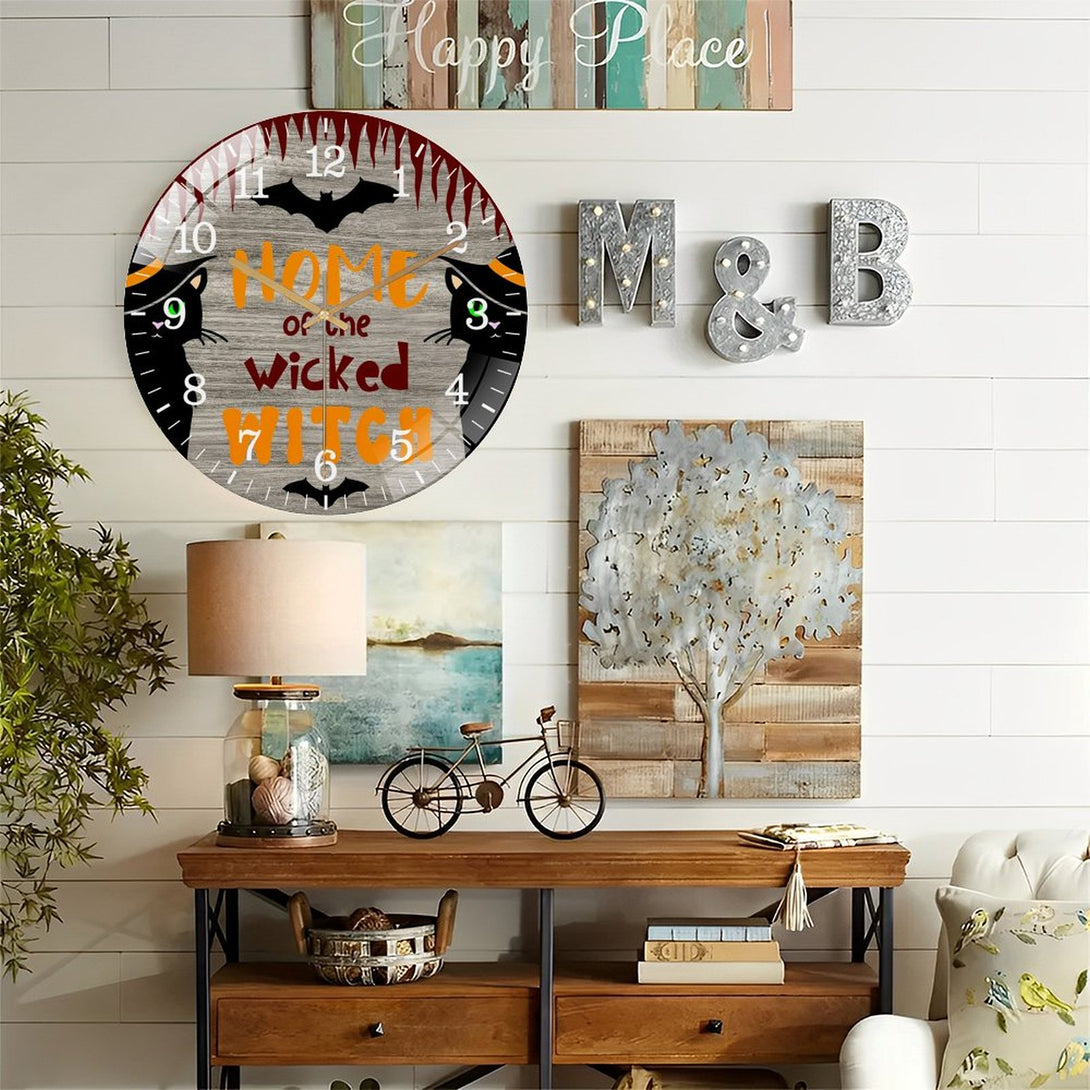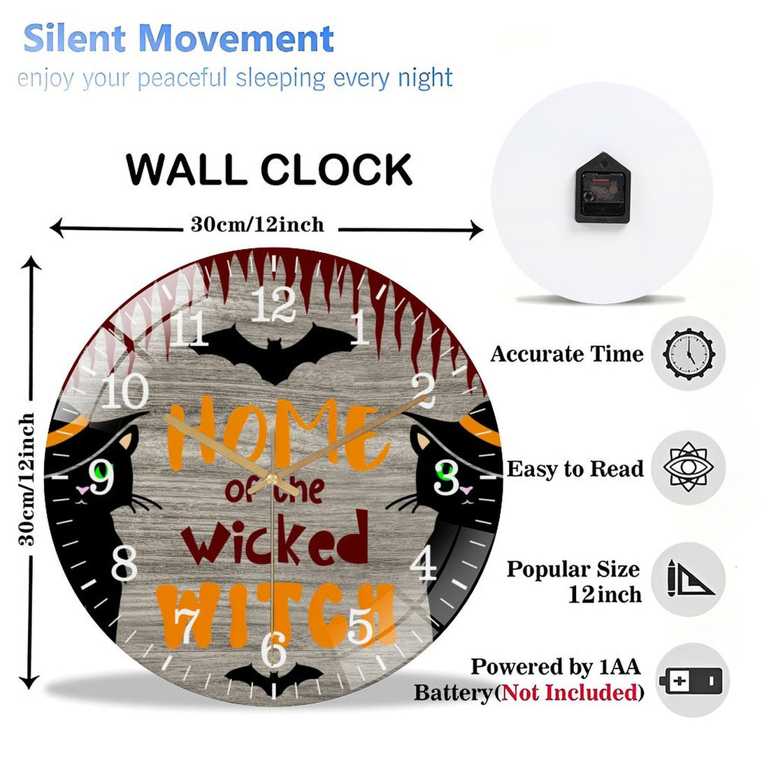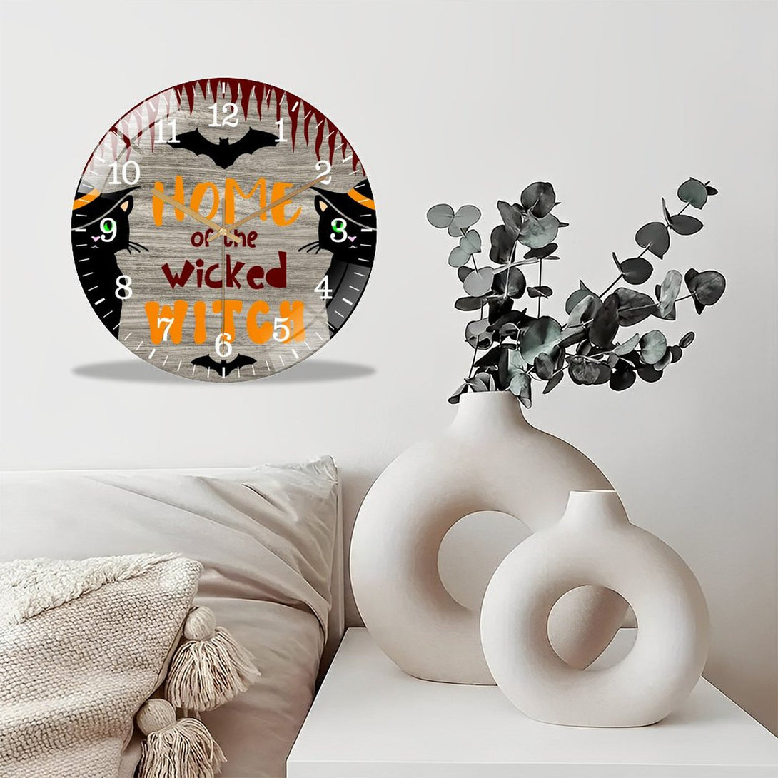 Decor Wall Clocks: Wicked Witch Glass Wall Clock, Hallo-ween Decor Wall Clock for Homes, Bars, Offices, Man Caves, Garages, And Living Rooms. Also Makes A Great Gift. Style 12×12inch(30×30cm)