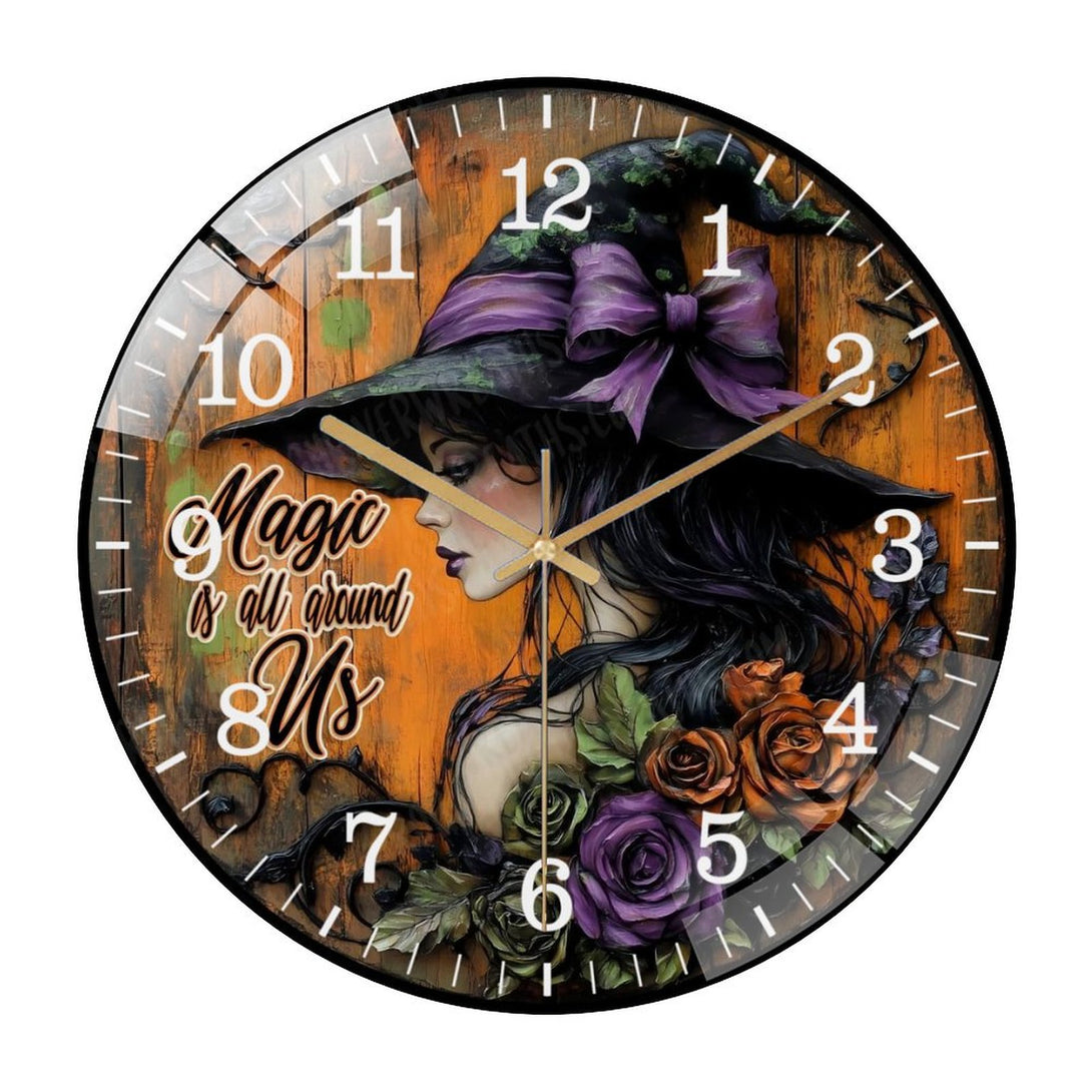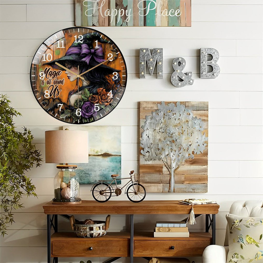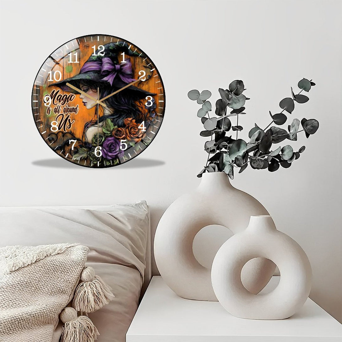 Decor Wall Clocks: Witch Wreath Glass Wall Clock, Magic Is All Around Us Wall Clock for Homes, Bars, Offices, Man Caves, Garages, And Living Rooms. Also Makes A Great Gift. Style 12×12inch(30×30cm)