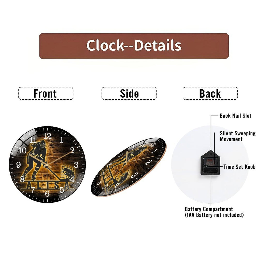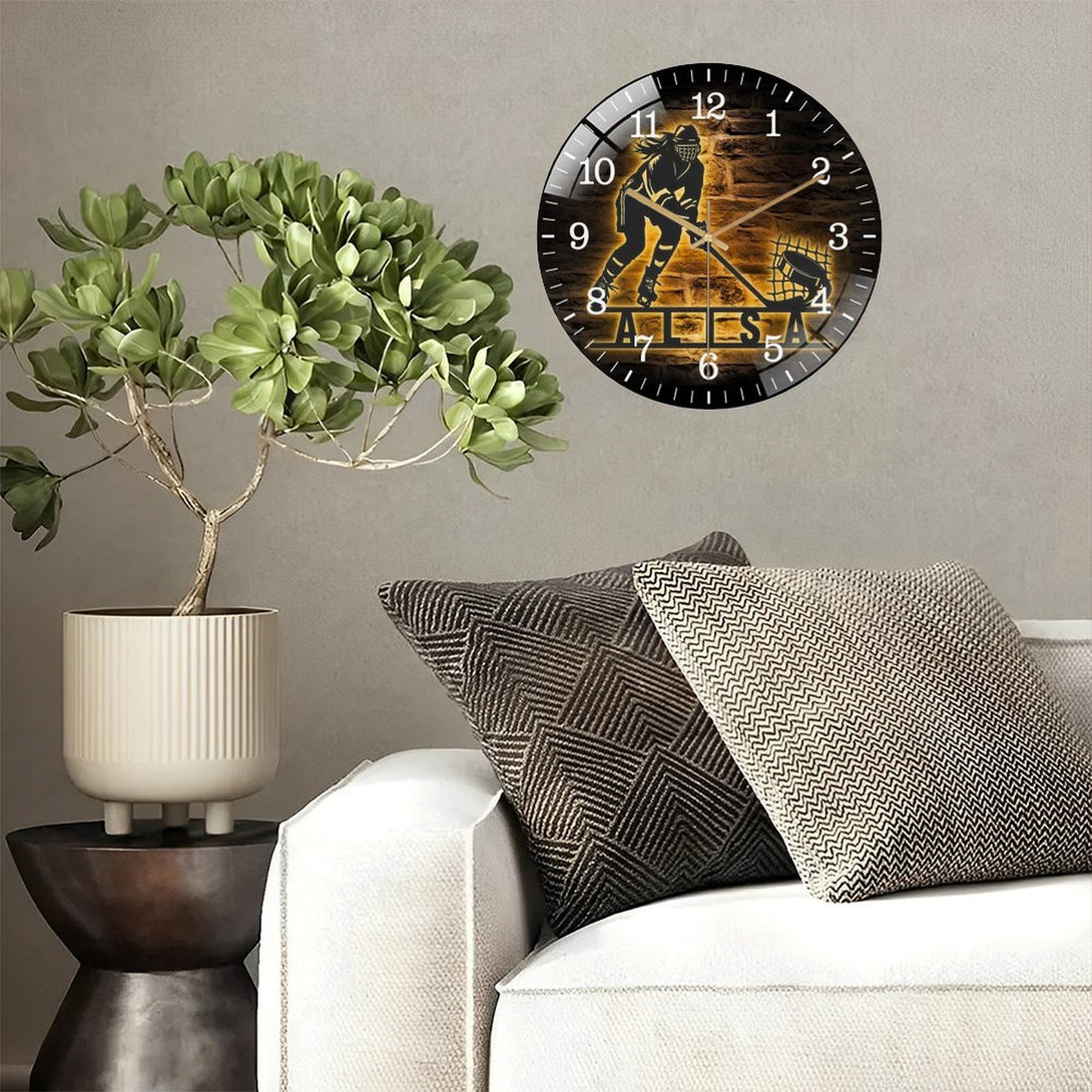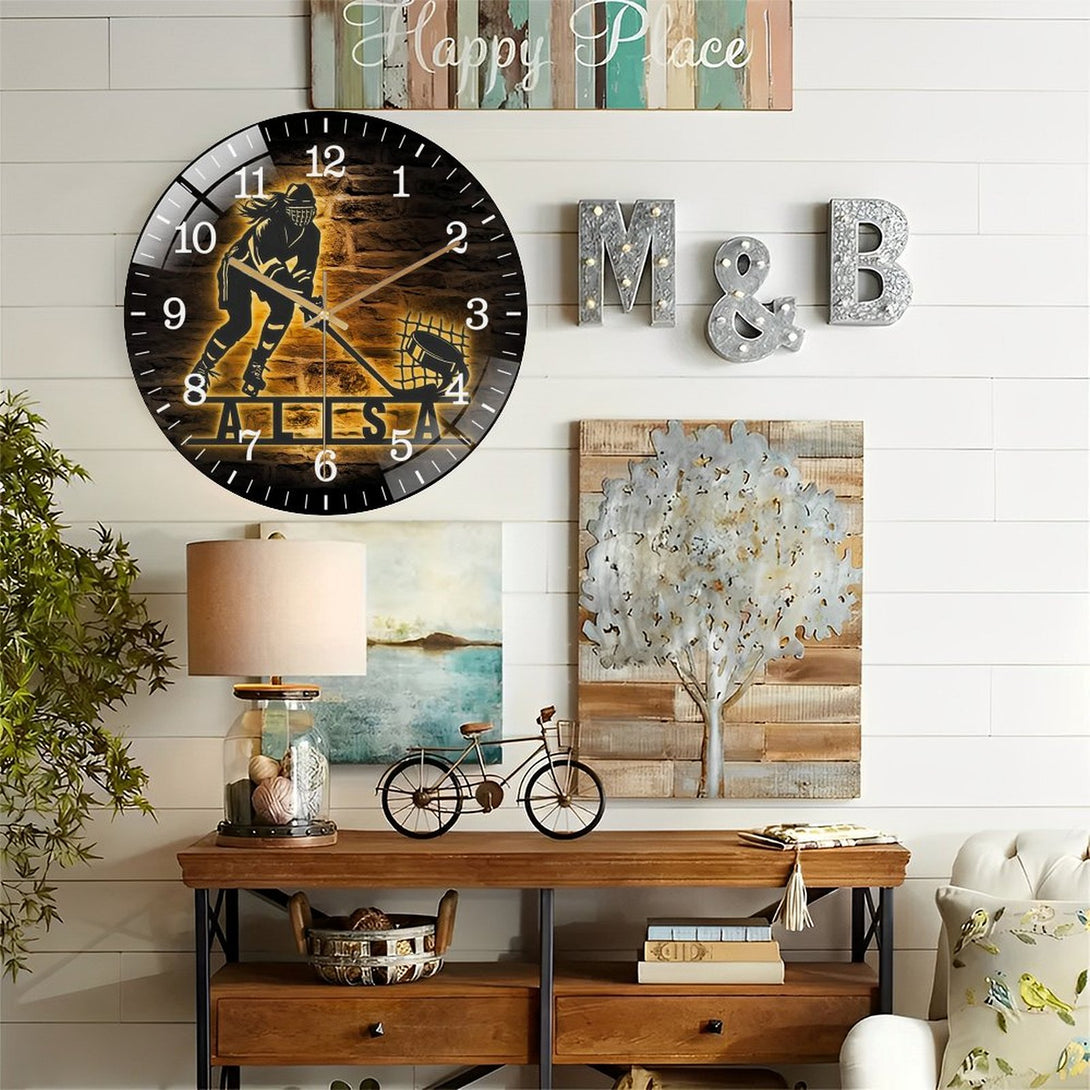 Woman Ice Hockey Player Glass Wall Clock, Female Hockey Wall Clock , Home Decor Kid Nursery Decoration Christmas,12×12inch(30×30cm)