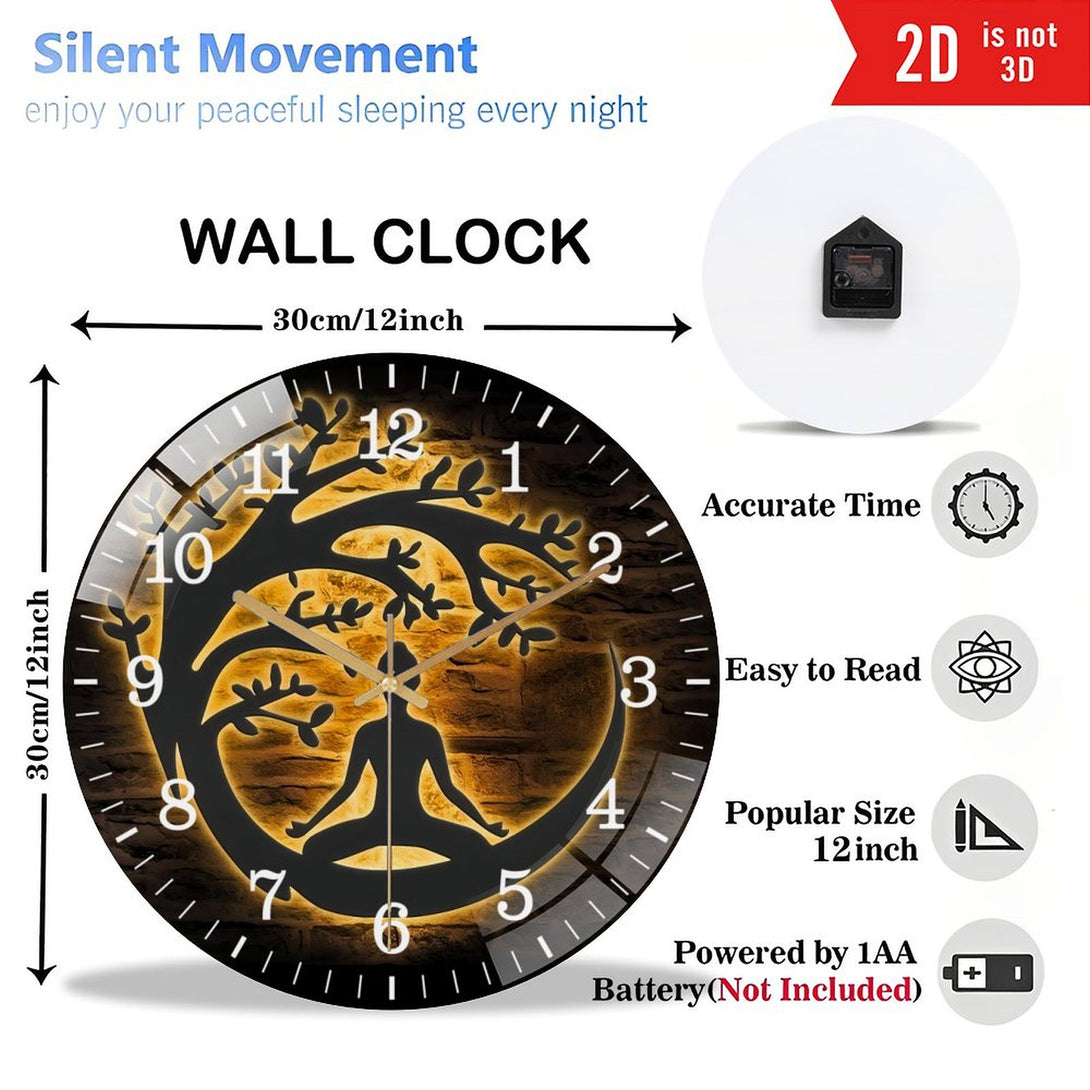 Decor Wall Clocks: Yoga Buddha Tree Glass Wall Clocks, Buddhist Glass Wall Clocks, Home Decor Buddhism Decoration Man Cave Housewarming Christmas Birthday Gifts Style 12×12inch(30×30cm)