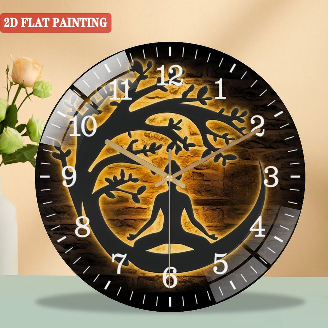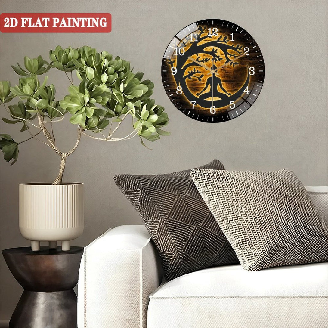 Yoga Buddha Tree Glass Wall Clocks, Buddhist Glass Wall Clocks, Home Decor Buddhism Decoration Man Cave Housewarming Christmas Birthday Gifts