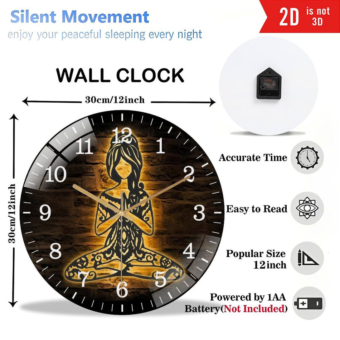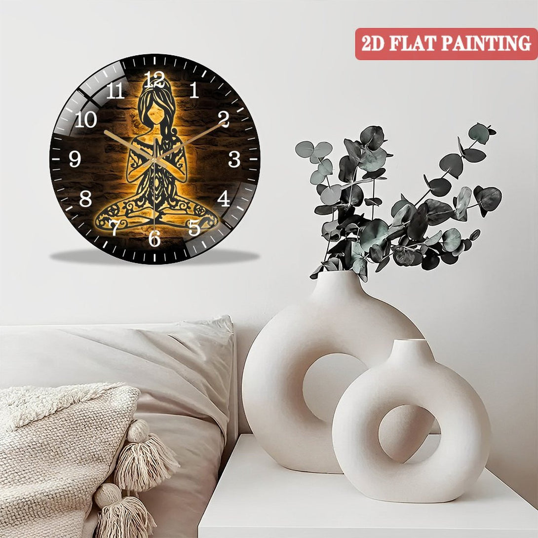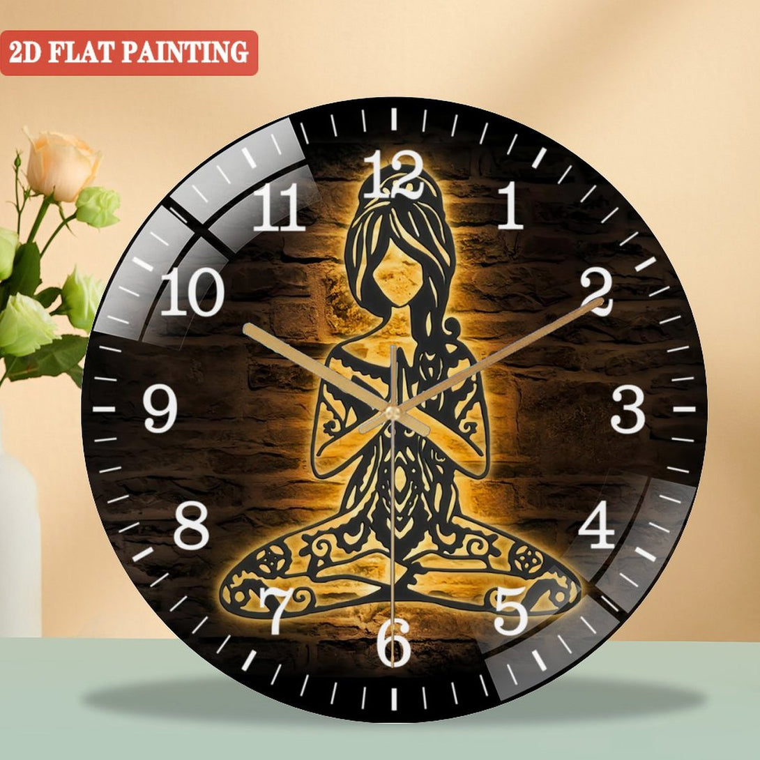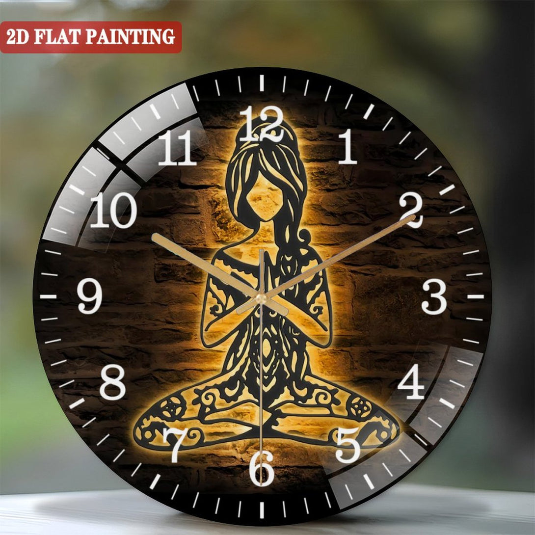 Yoga Girl In Hippie Style Glass Wall Clocks, Mandala Namaste Glass Wall Clocks, Home Decor Yoga Room Decoration Hanging Door Christmas Birthday.