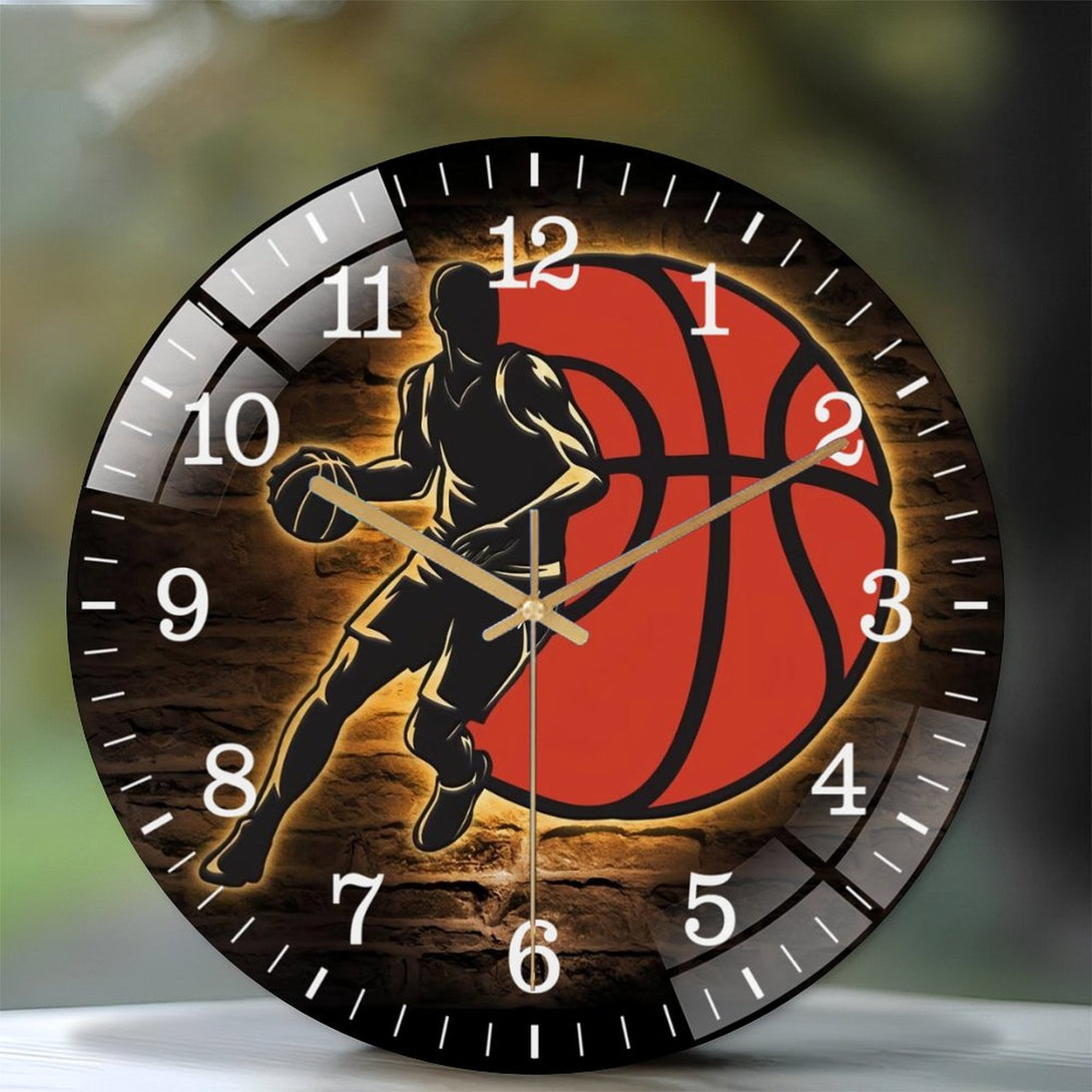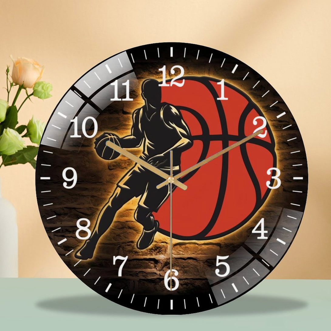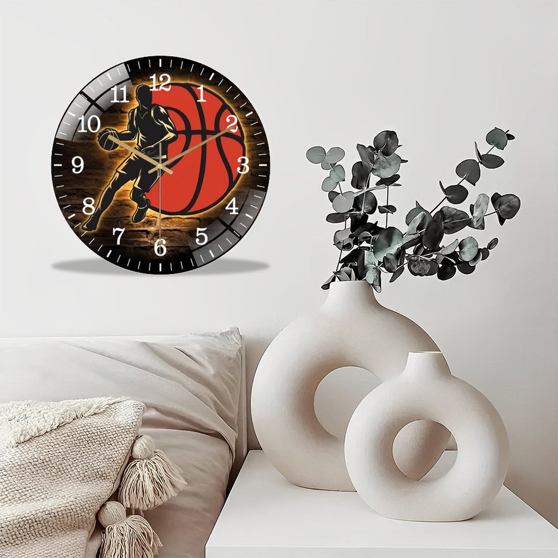 Decorative Clocks: Boy Basketball Glass Wall Clock, Basketball Player Lover Wall Clock,Basketball Wall Art, Home Decor Man Cave Sports Room Decoration Father's Day Birthday Christmas
