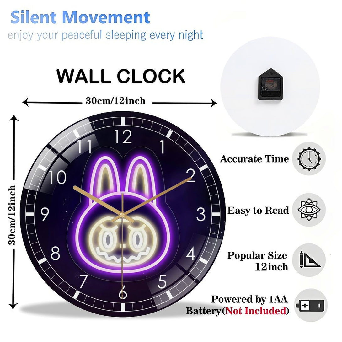 Cute Labubu Glass Wall Clock ,Labubu Gamer Wall Clock for Home Decor, Christmas Gift for Bedroom, Game Room, Man Cave, Party Decor, Off Road Game Room Wall Decor,12×12inch(30×30cm)
