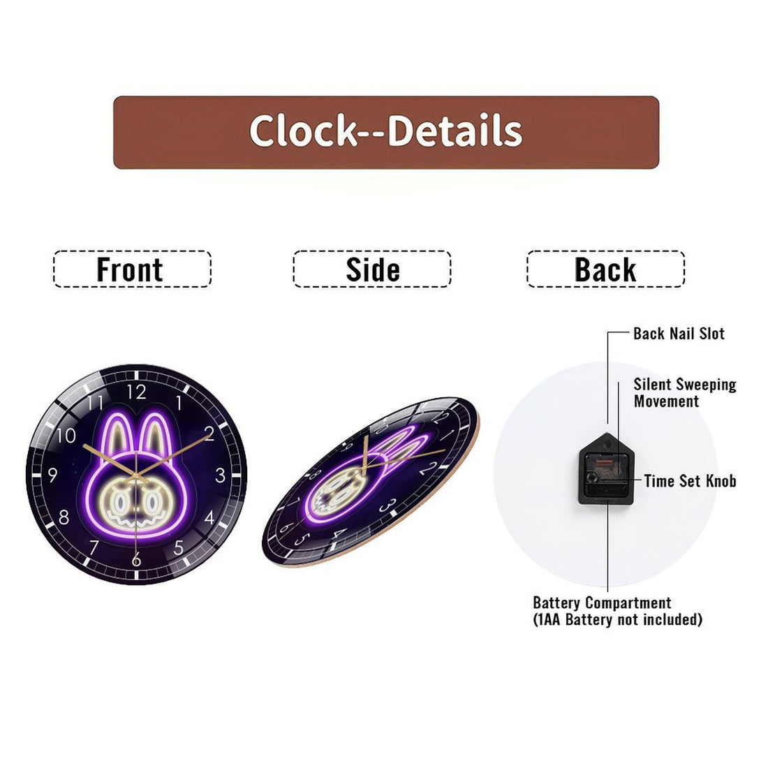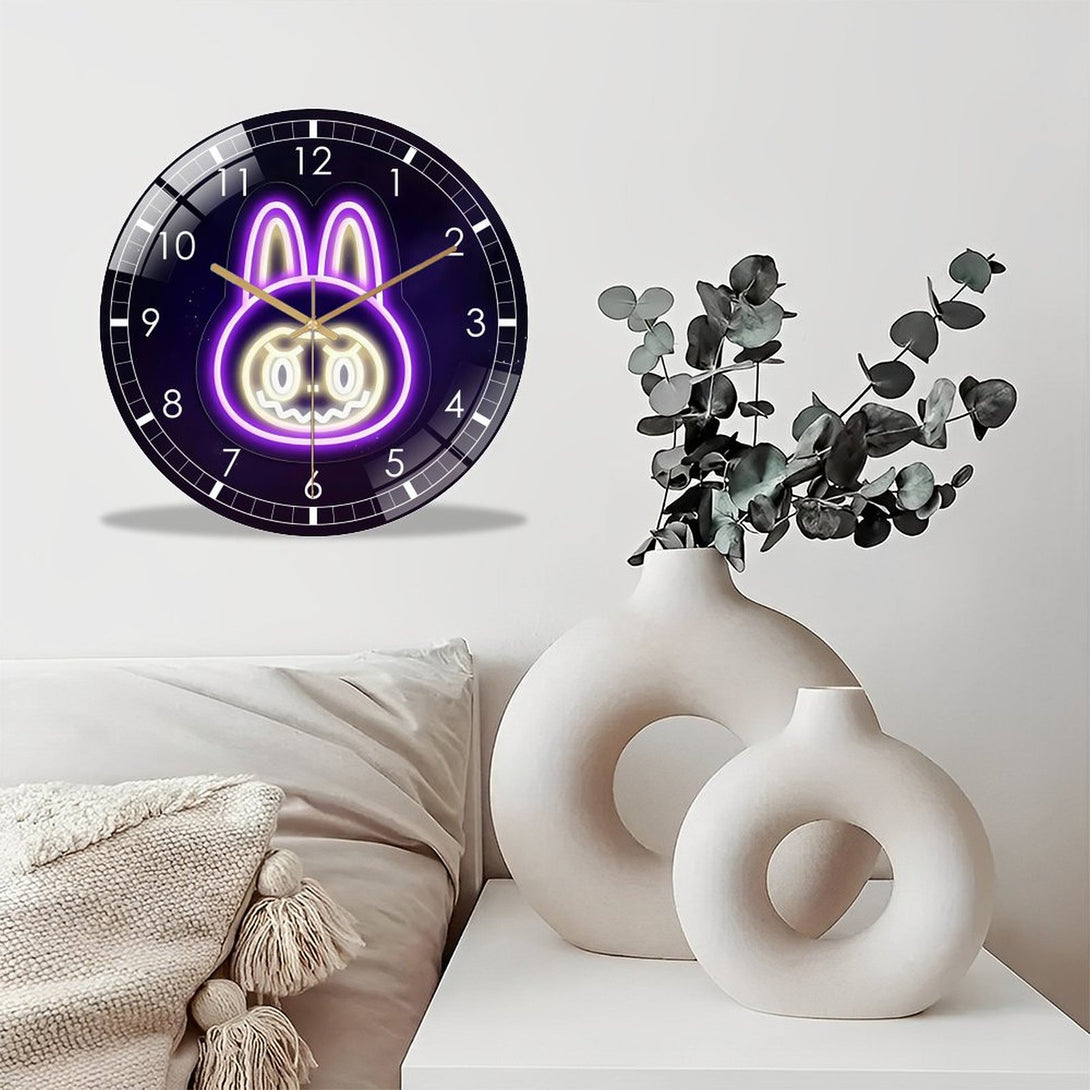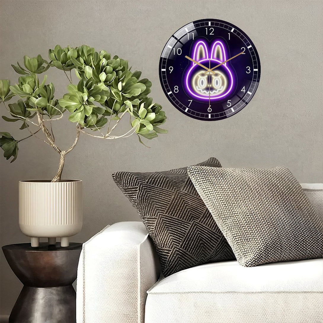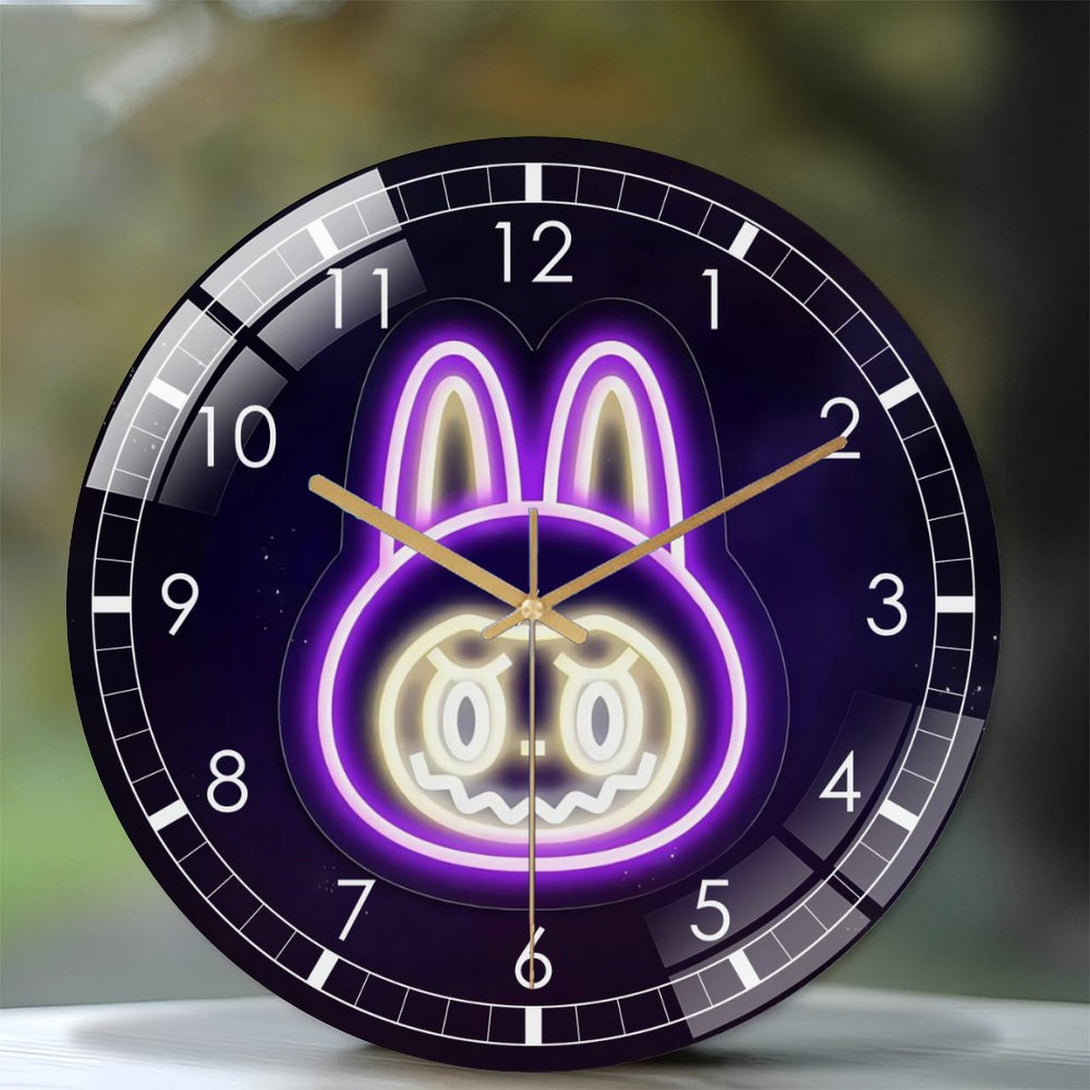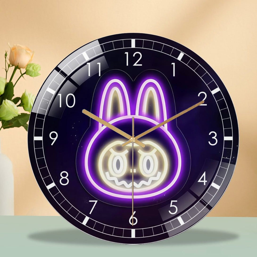 Decorative Clocks: Cute Labubu Glass Wall Clock ,Labubu Gamer Wall Clock for Home Decor, Christmas Gift for Bedroom, Game Room, Man Cave, Party Decor, Off Road Game Room Wall Decor