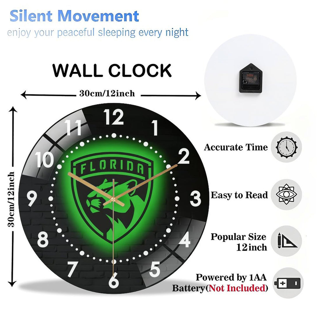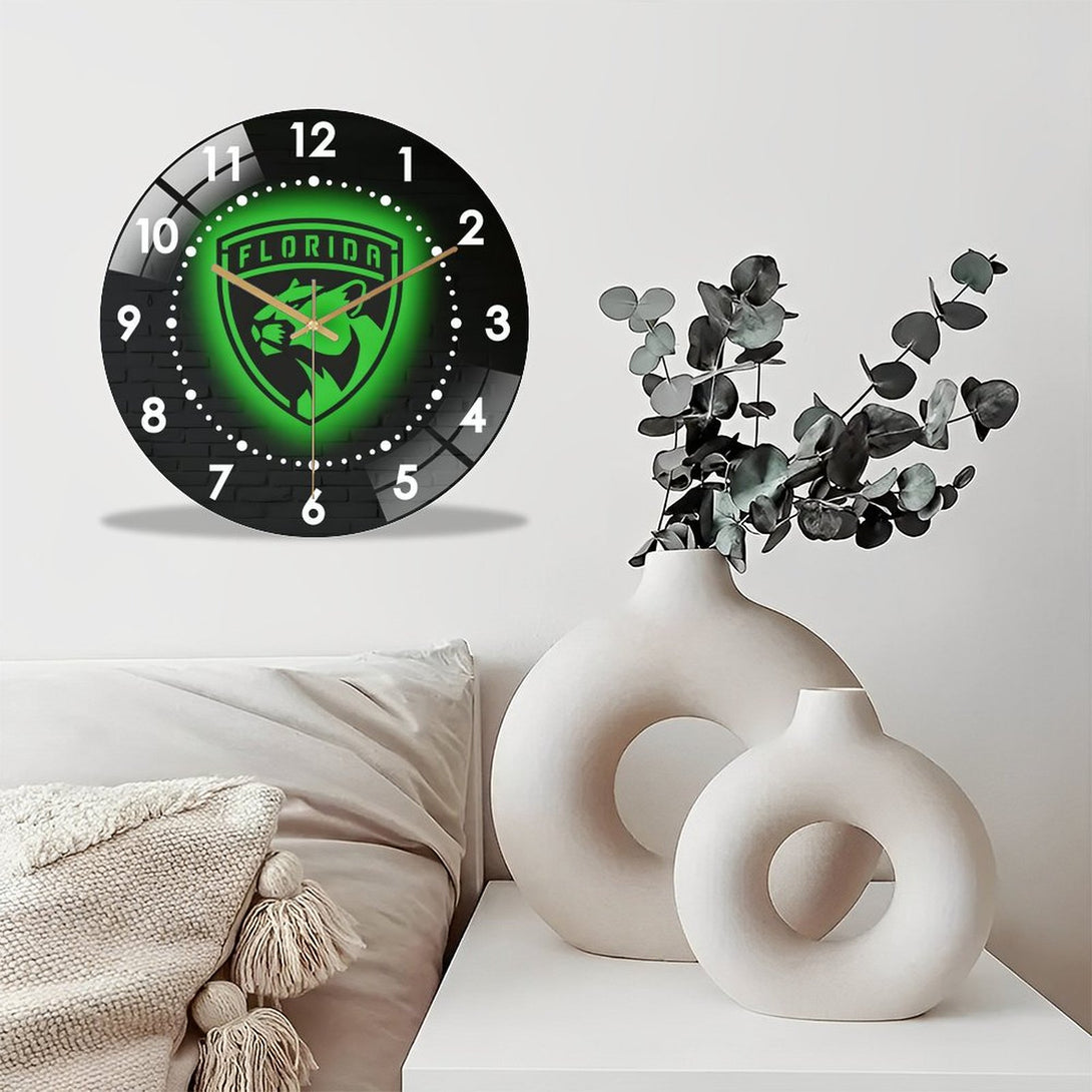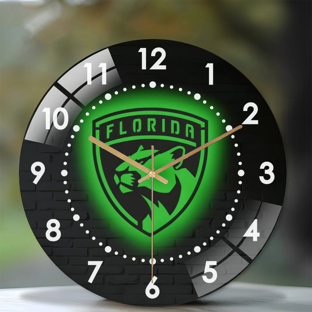 Decorative Clocks: Florida- Panthers Glass Wall Clockr – Modern N H L Team Wall Art Glass Wall Clock, Hockey Fan Gift, Game Room Or Sports Bar Metal Wall Accent Style 12×12inch(30×30cm)