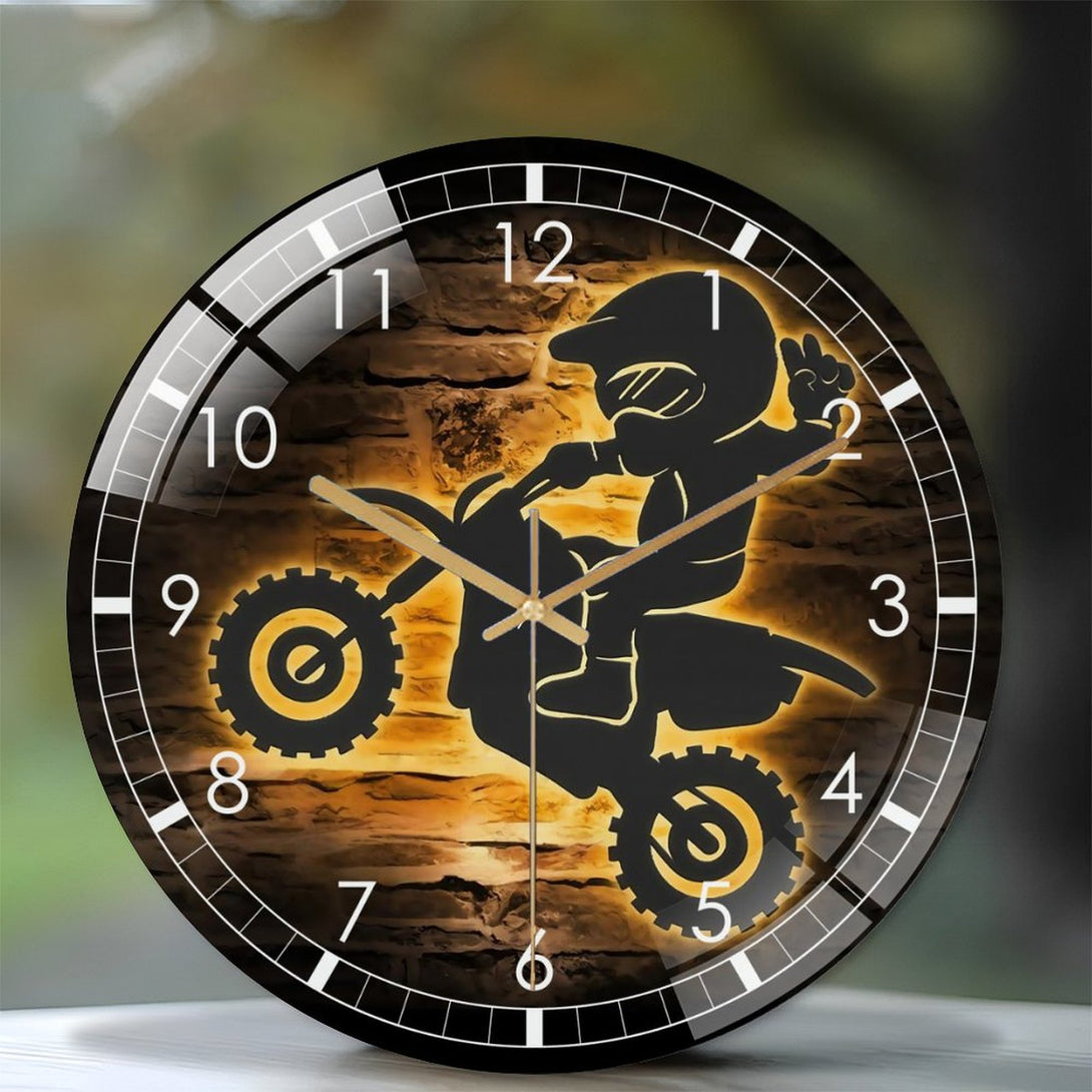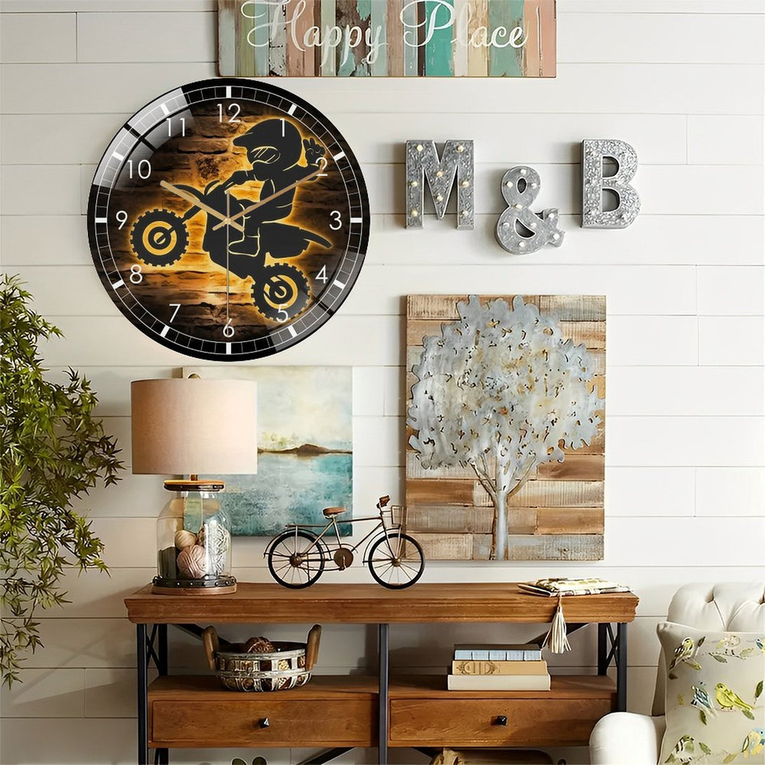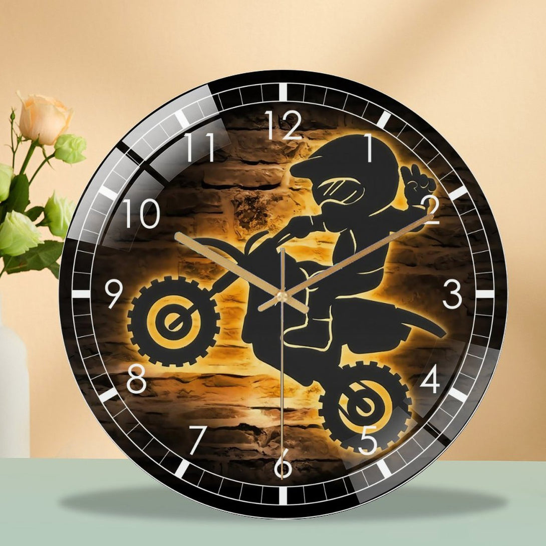 Decorative Clocks: Motocross Biker Kids Glass Wall Clock ,Little Dirt Bike Boy Wall Clock for Home Decor, Christmas Gift for Bedroom, Game Room, Man Cave, Party Decor, Off Road Game Room