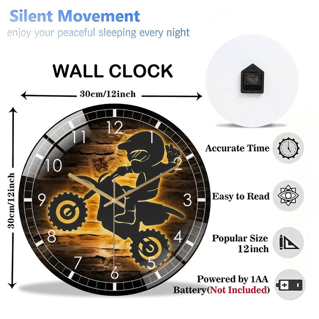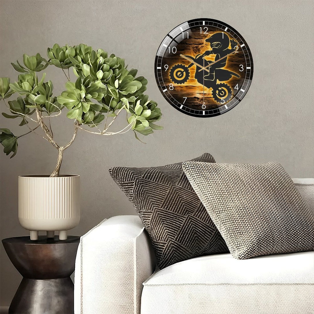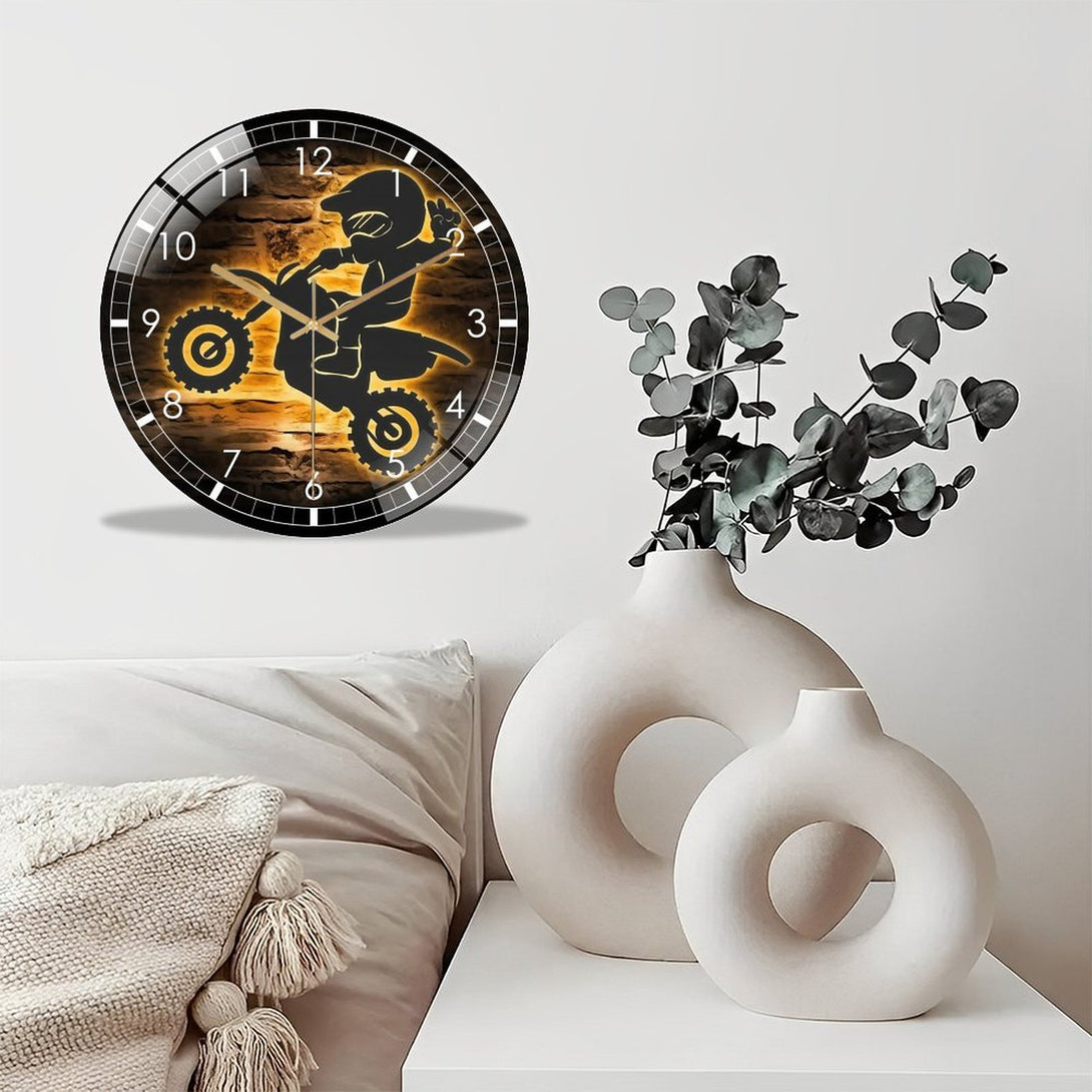 Decorative Clocks: Motocross Biker Kids Glass Wall Clock ,Little Dirt Bike Boy Wall Clock for Home Decor, Christmas Gift for Bedroom, Game Room, Man Cave, Party Decor, Off Road Game Room