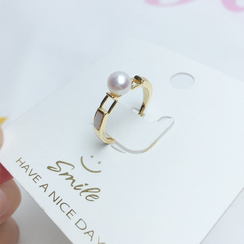 Pearl Rings-Design Ins Natural Freshwater Pearl Ring Simple Small And Exquisite Shell 14K Gold Plated Ring Jewelry For Woman Gift