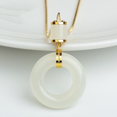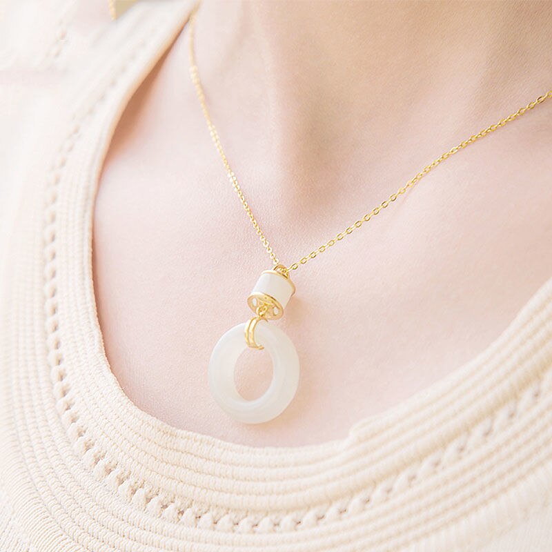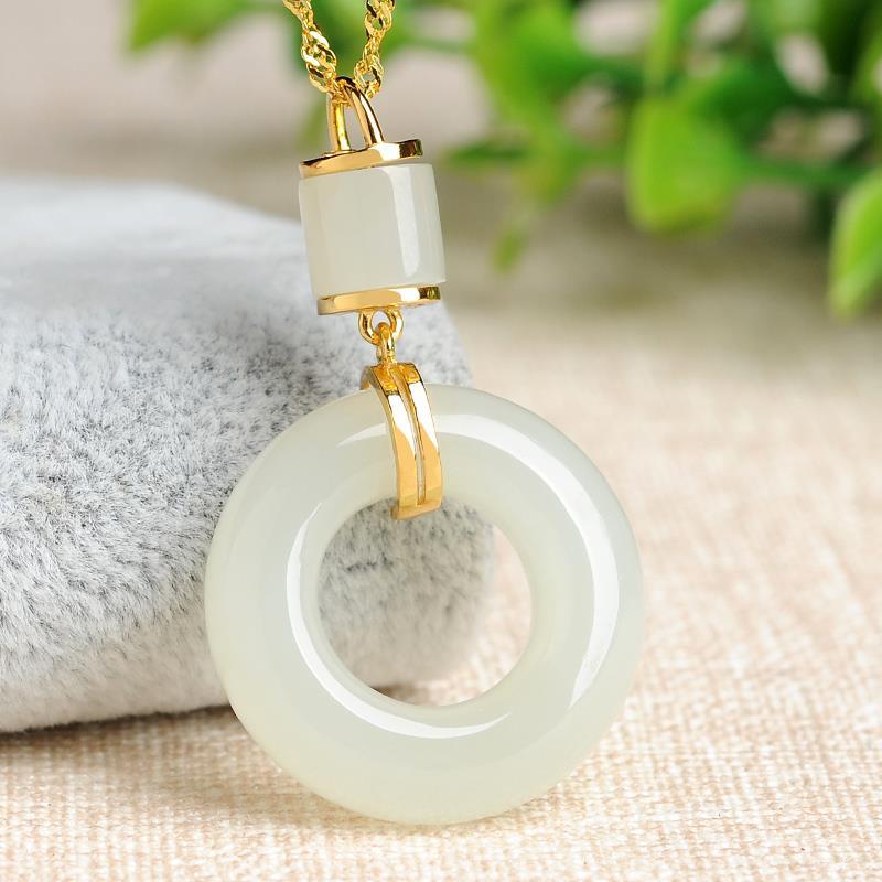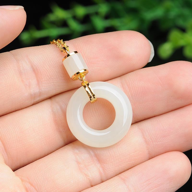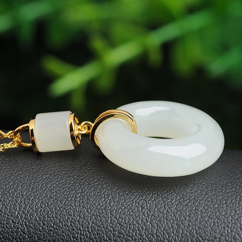 Pendants-Designer original new natural Hetian jade ring pendant necklace exquisite and elegant charm ladies silver jewelry