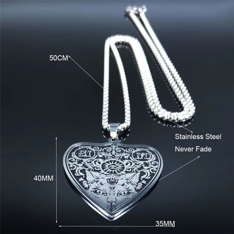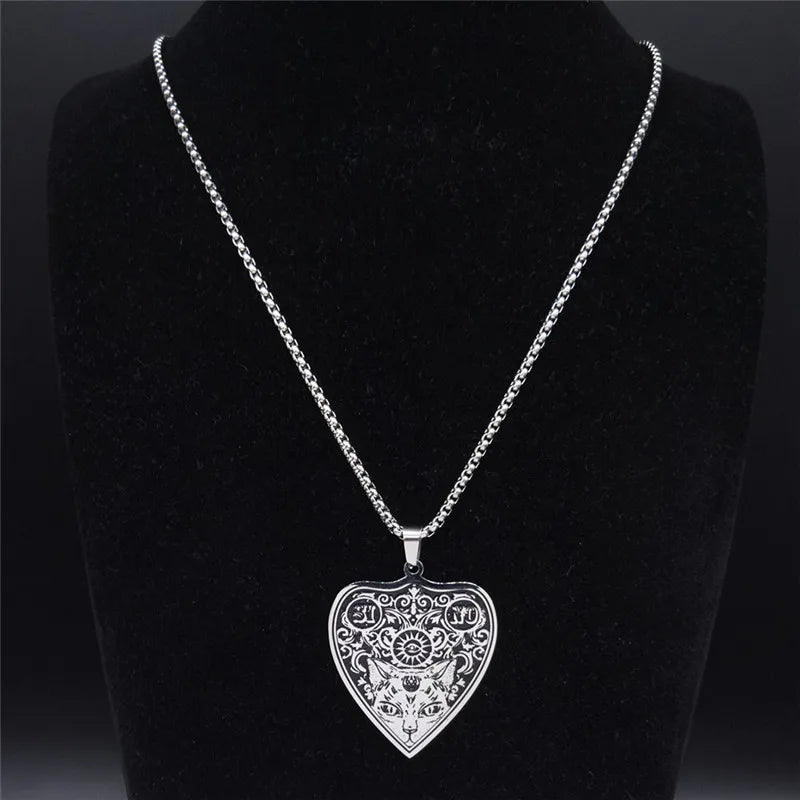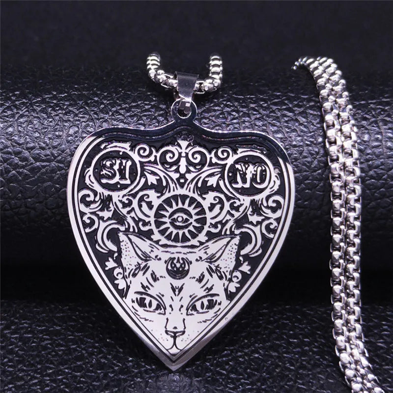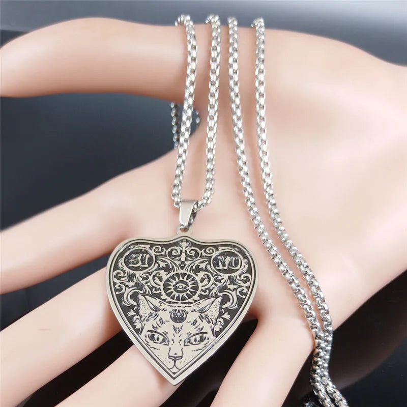 Divination Cat Stainless Steel Necklaces Pendants for Women Silver Color Witchcraft Chain Necklace Jewelry joyas