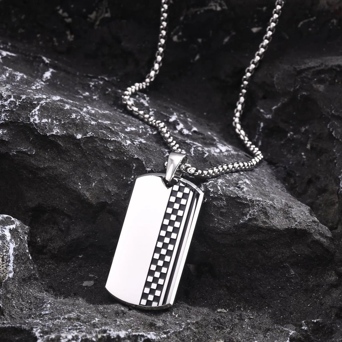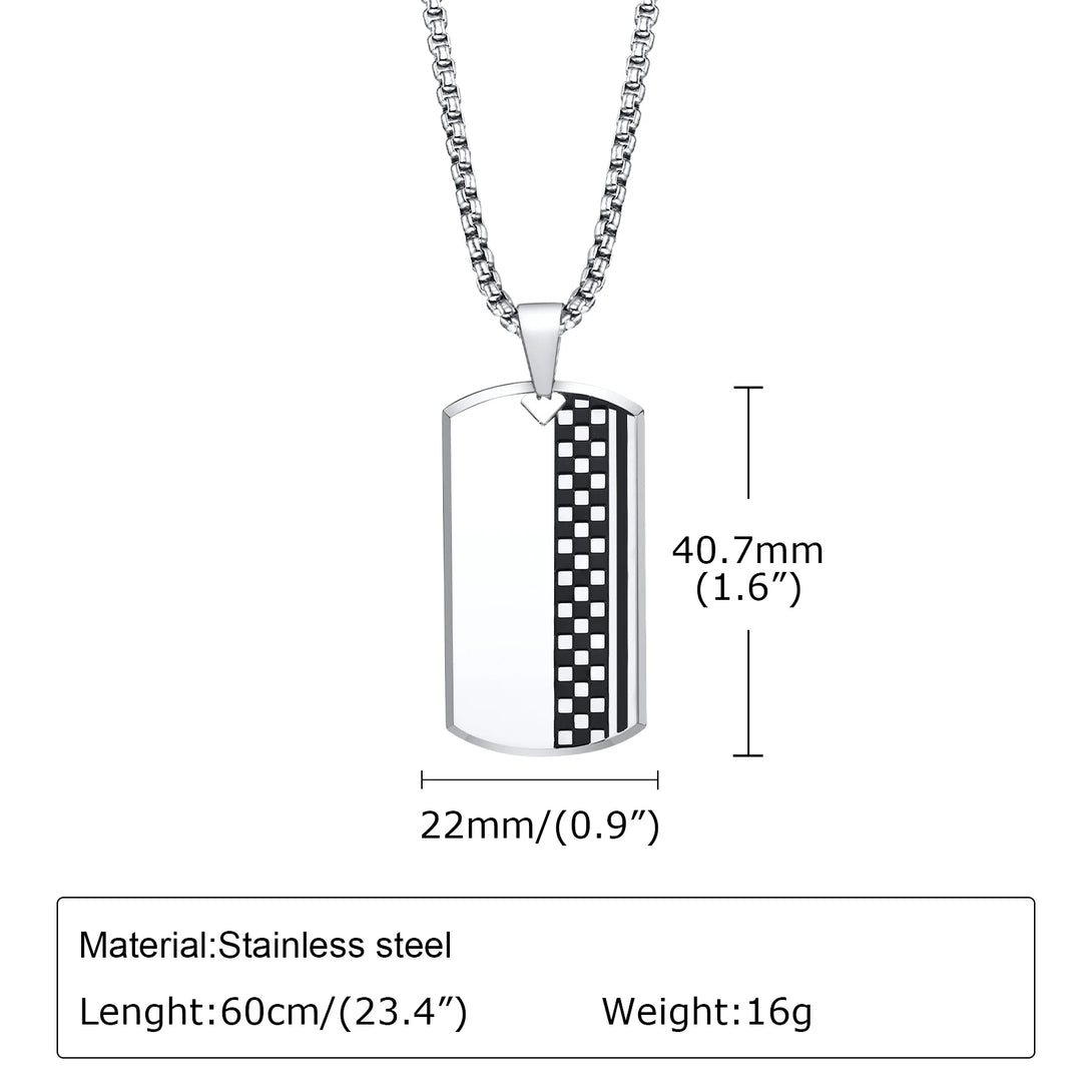 Dog Tag Checkerboard Pendant Necklaces,Simple Stainless Steel Military Necklace with Box Chain,Never Fade Jewelry