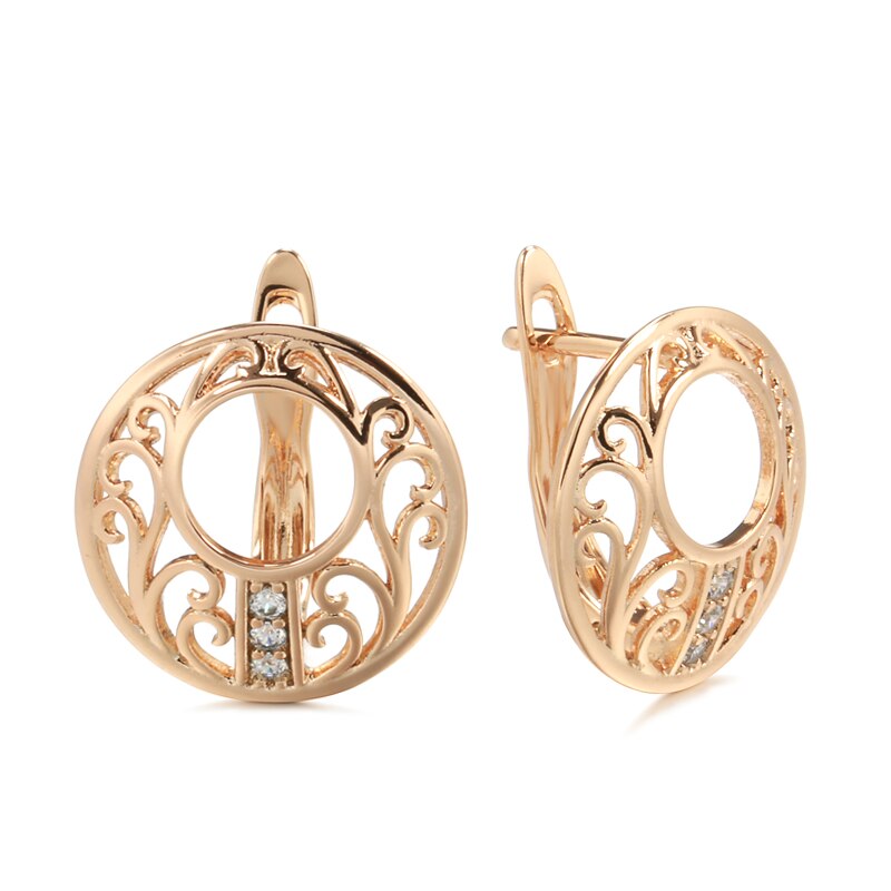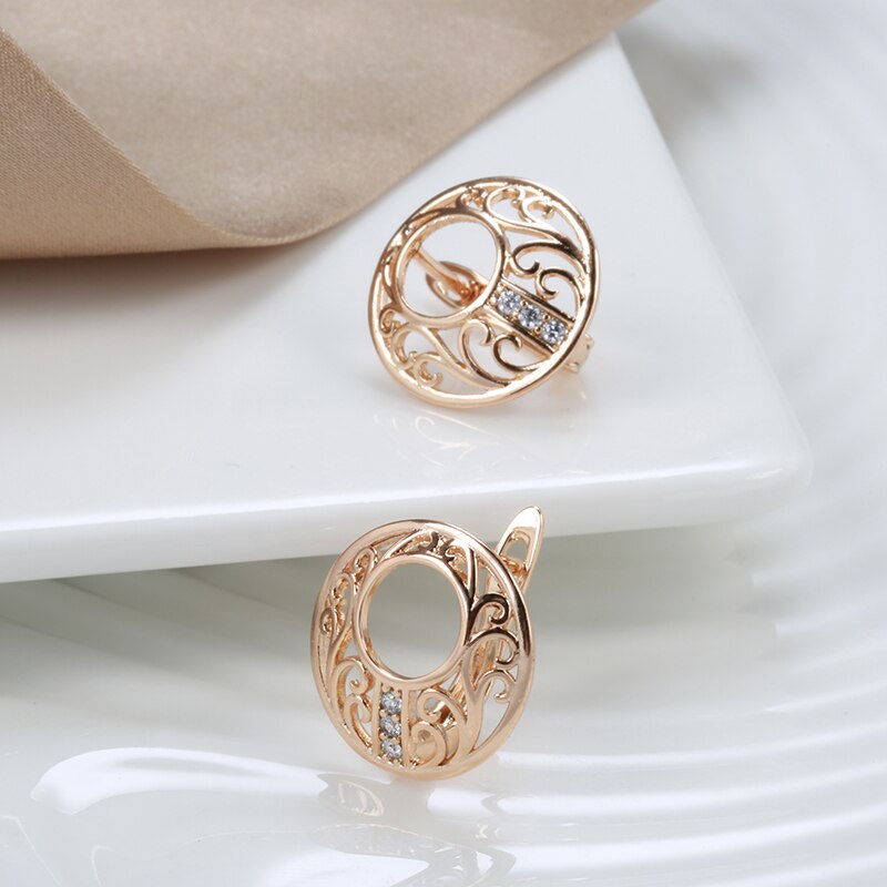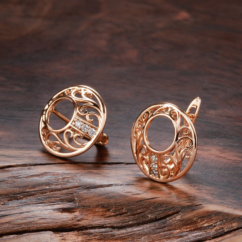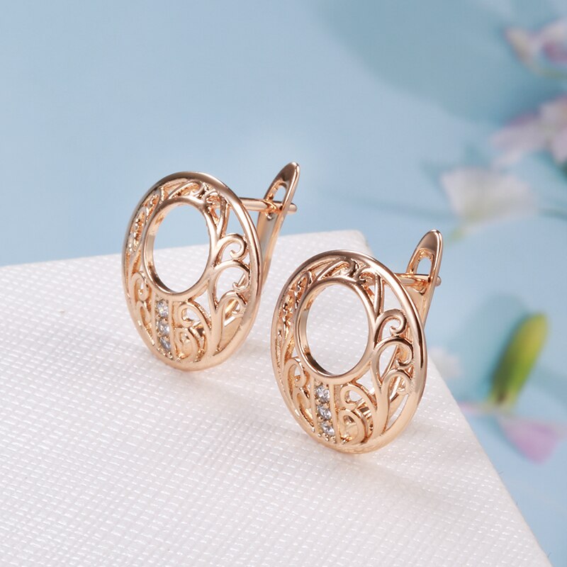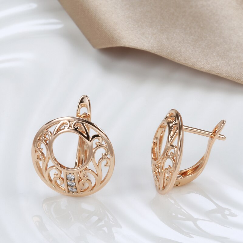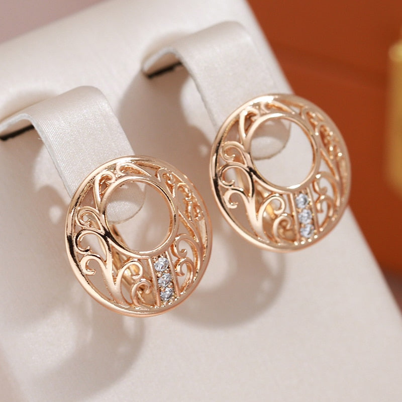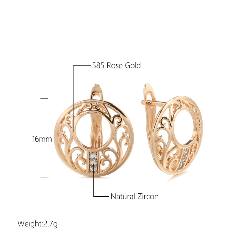 585 Gold Jewelry- Double Hollow Round Gold Color Drop Earrings for Women Inlay Zircon Vintage Temperament Jewelry Elegant Accessories