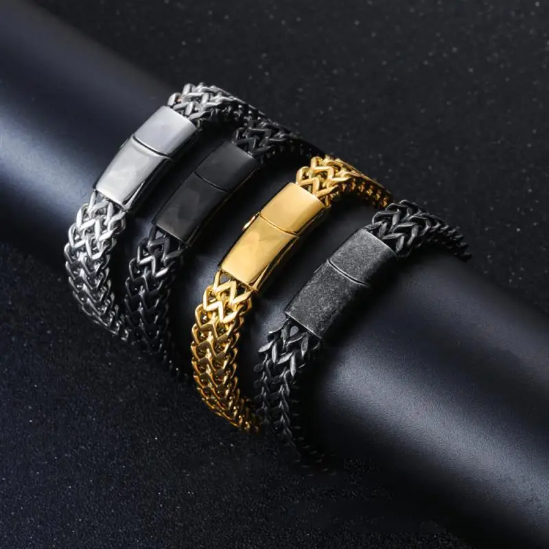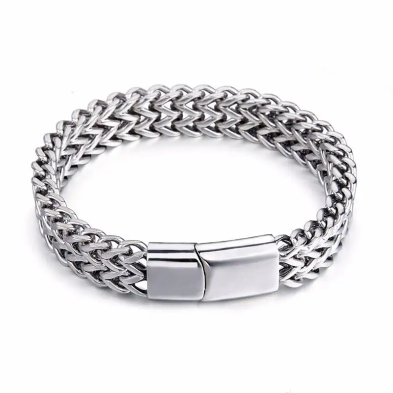 Leather Bracelet- New Style Titanium Bracelet Bangles for Men Double Layer 316L Stainless Steel Curb Cuban Link Chain Bracelets