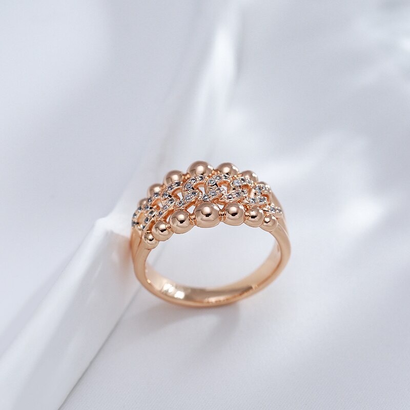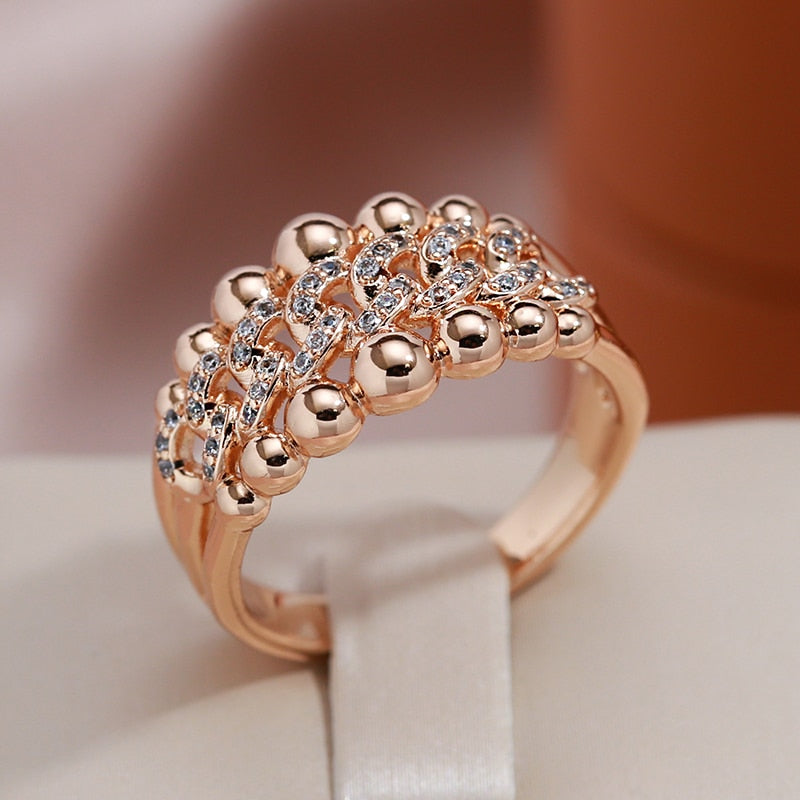 585 Gold Jewelry-Double Metal Beads 585 Gold Color Chain Full Zircon Rings for Women Personality Trendy Jewelry Party Match Accessories