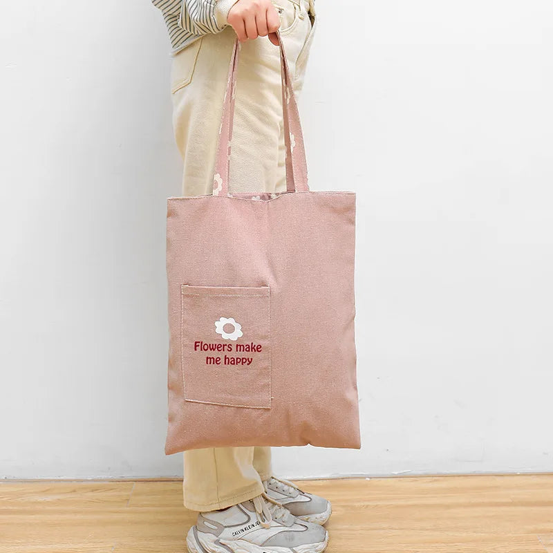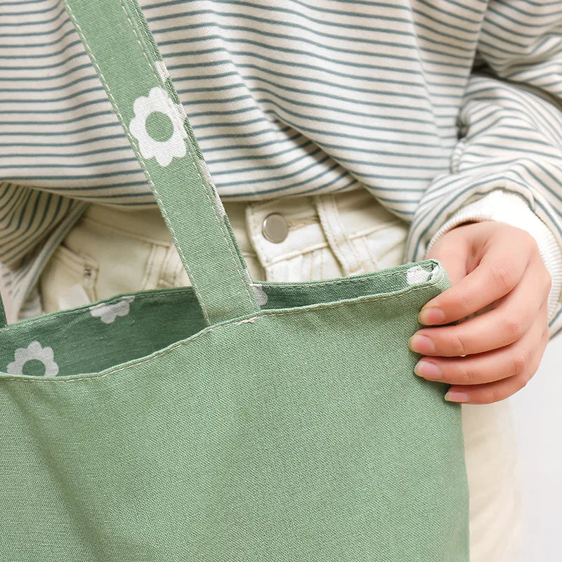 Double Sided Shoulder Bag for Women Shopper Top Handle Bags Reusable Flower Shopping Bag Travel Handbags Grocery Storage Totebag