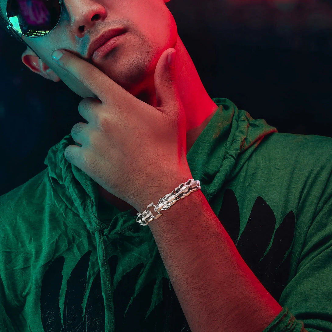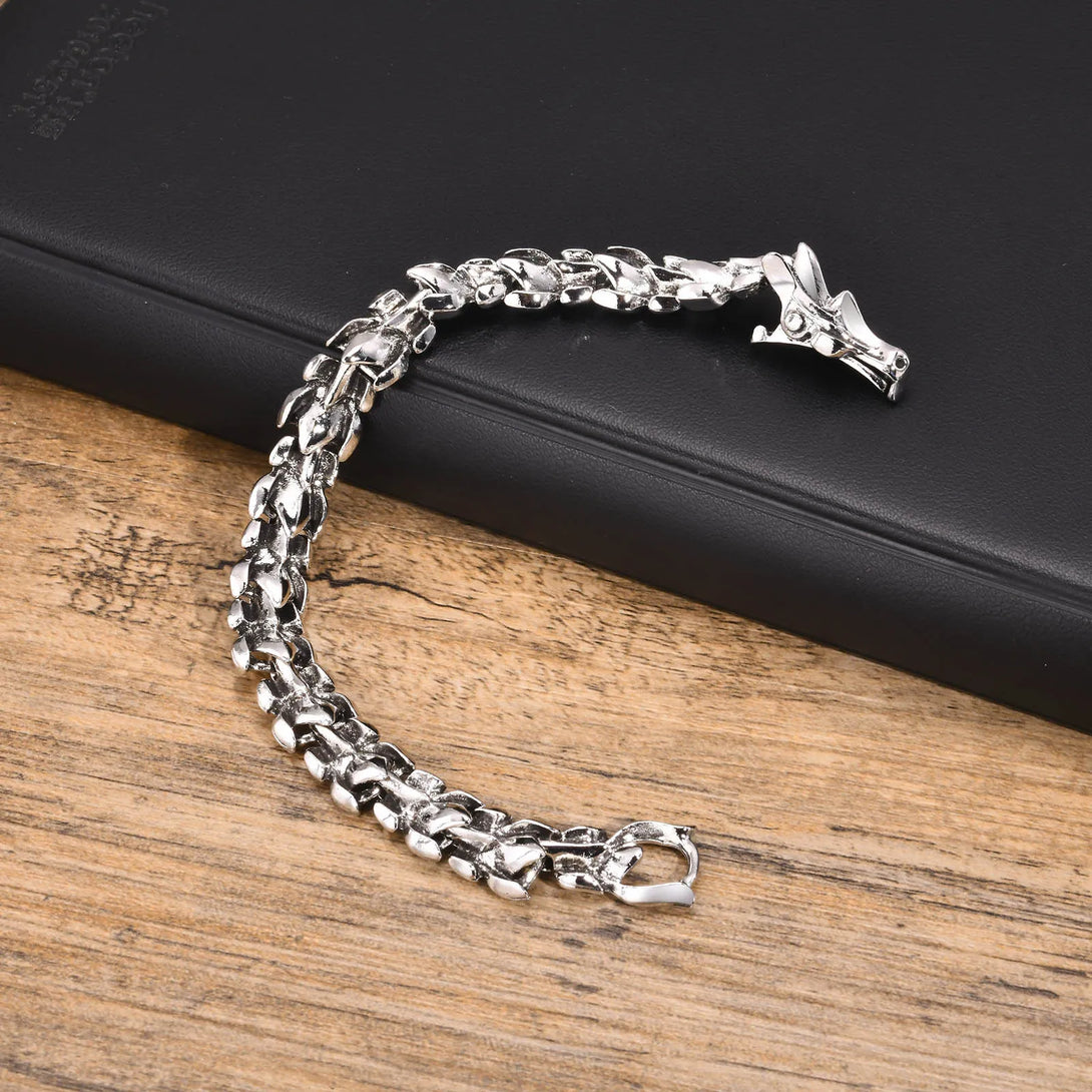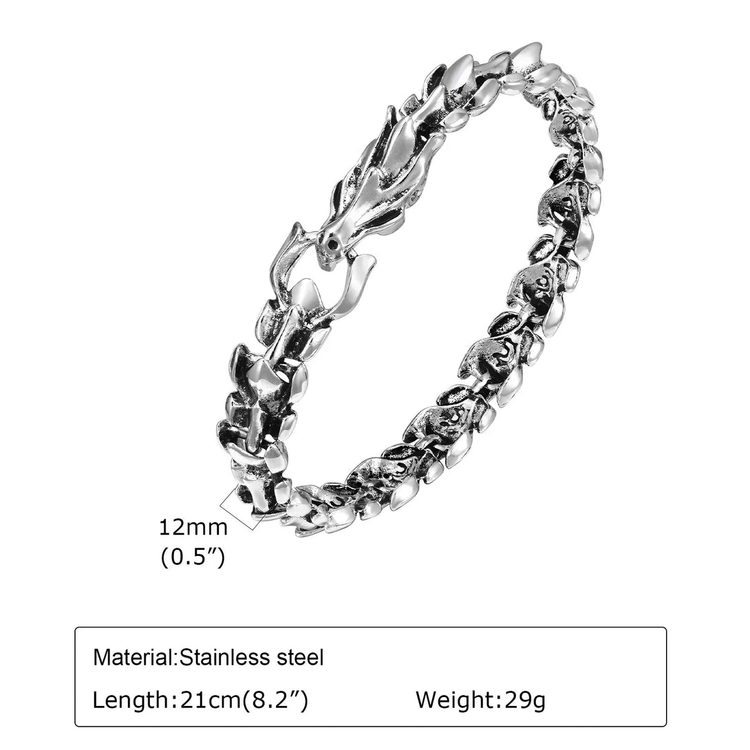 Dragon Bone Bracelets for Men Boys,Punk Rock Dragon Head Buckle Chain Wristband