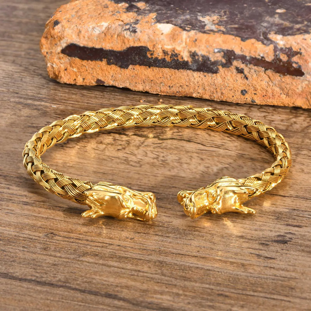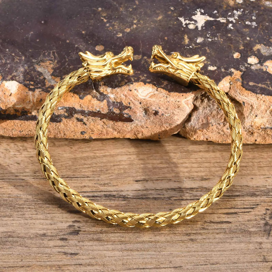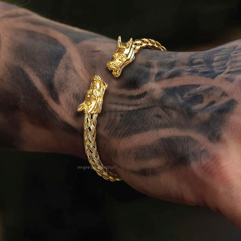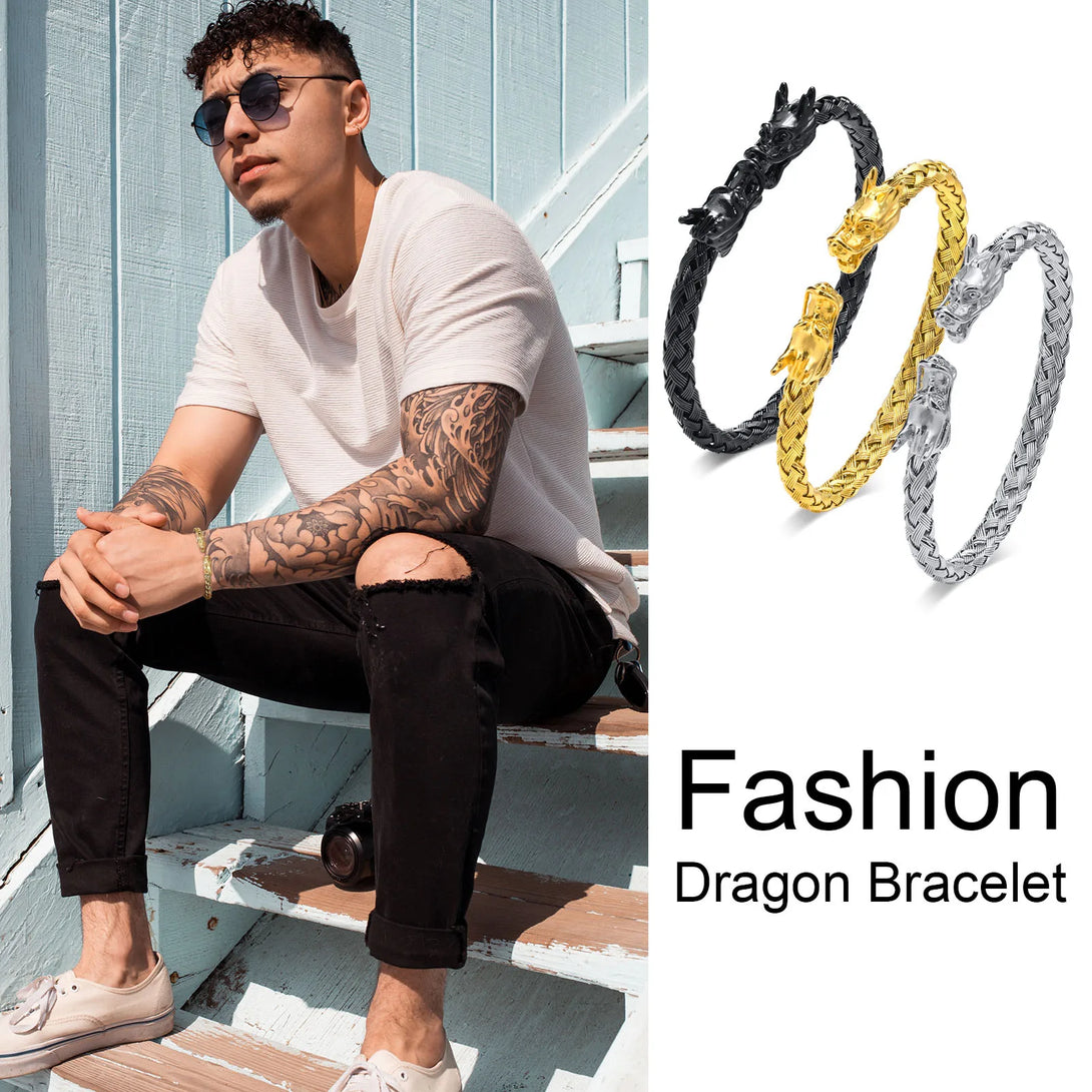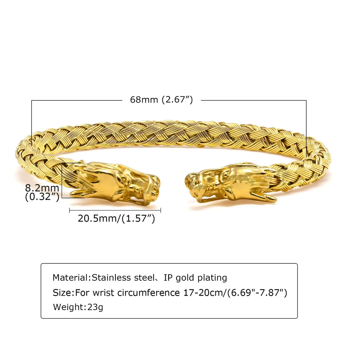 Dragon Head Bracelet, Men Bracelets, Stainless Steel Weave Cuff Bangle