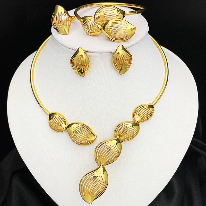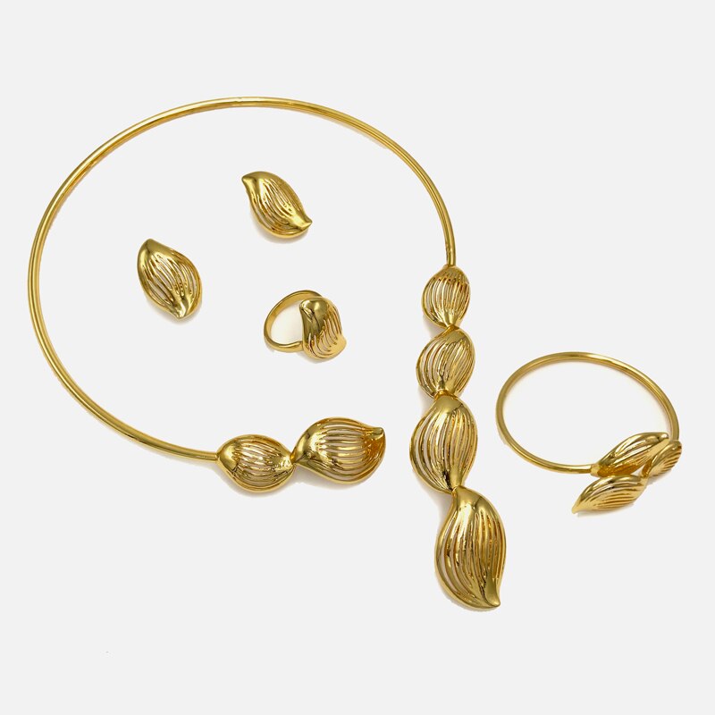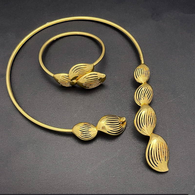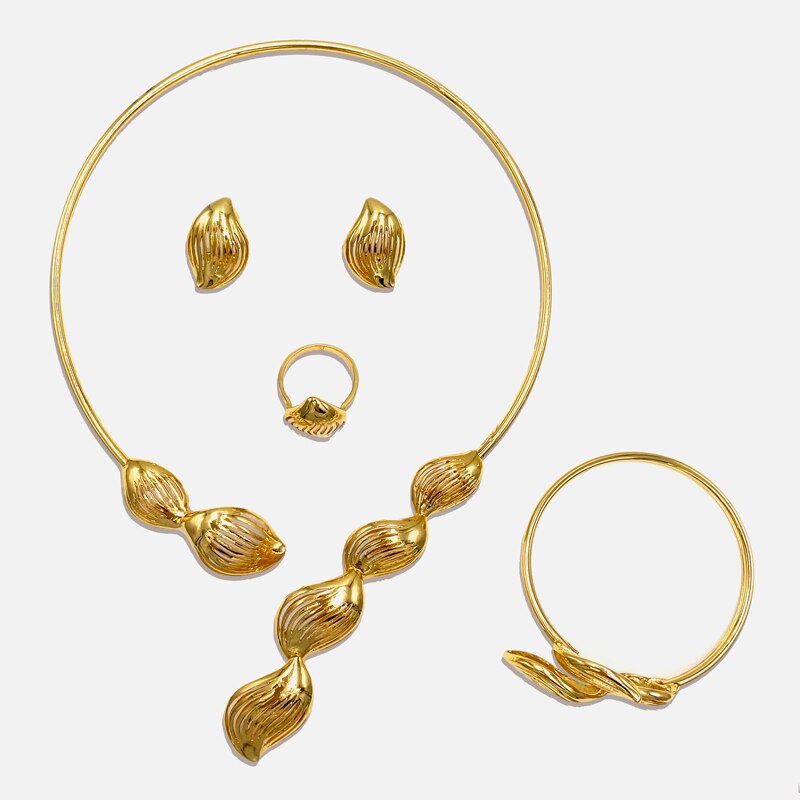 Dubai Fashion Earrings Pendant Necklace Jewelry Set Nigerian Luxury Gold Color Jewelry Sets