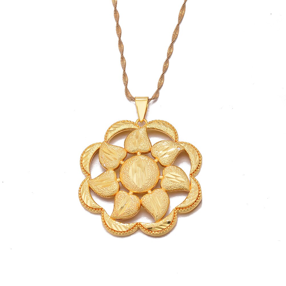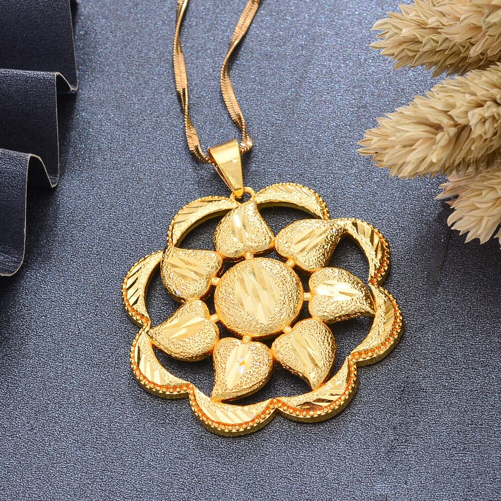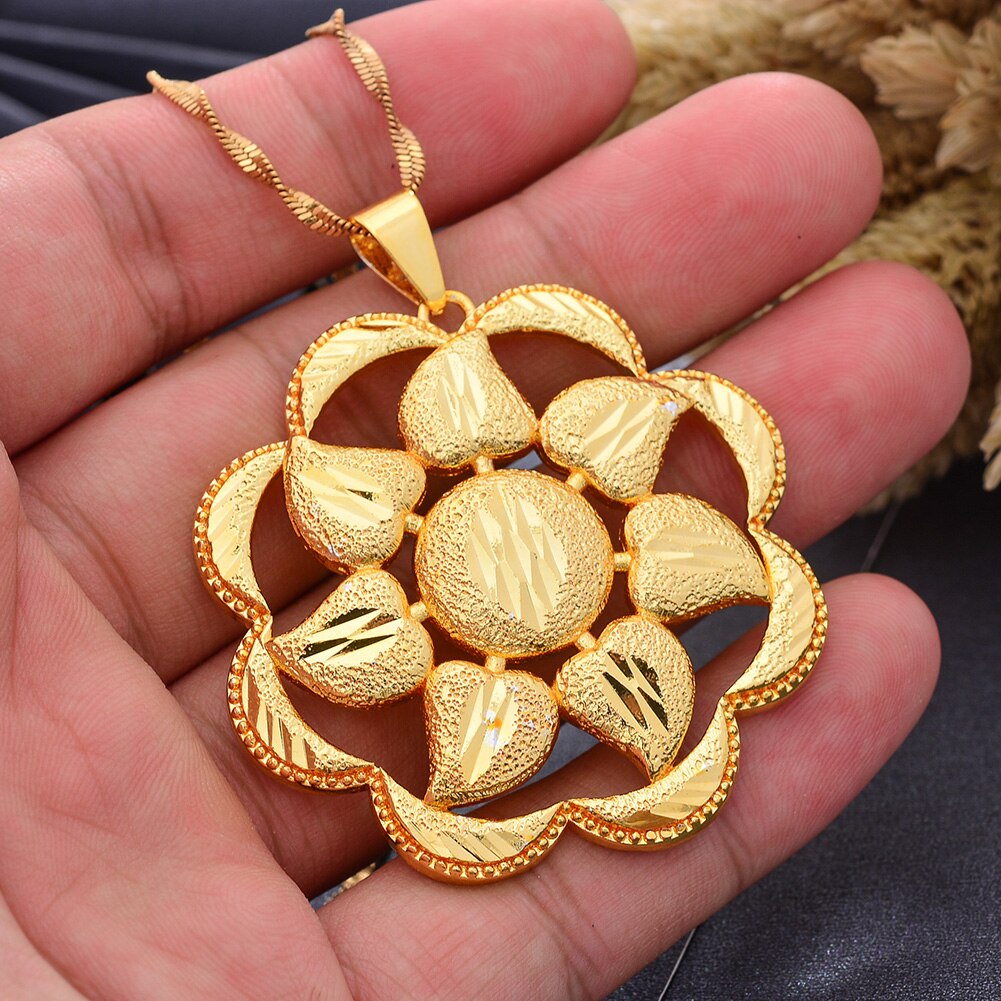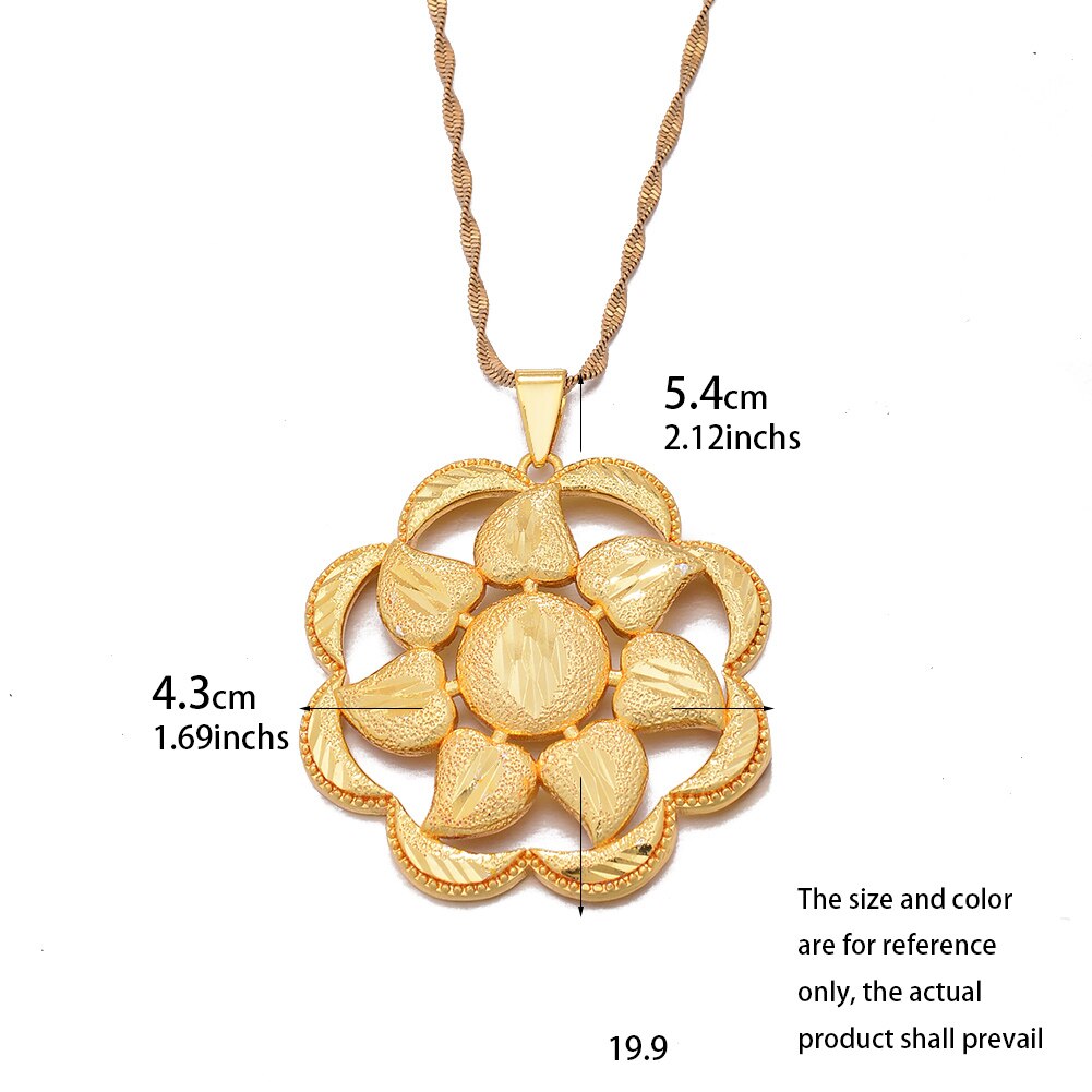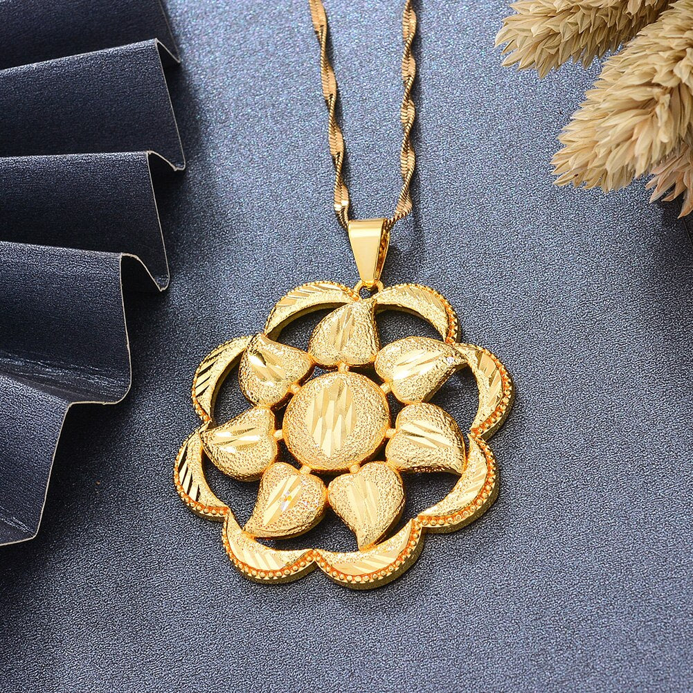 Afraic Jewelry -Dubai Gold Color Africa Birthday Party Party Flower Pendant Chain Necklaces Wife Jewelry For Women Men