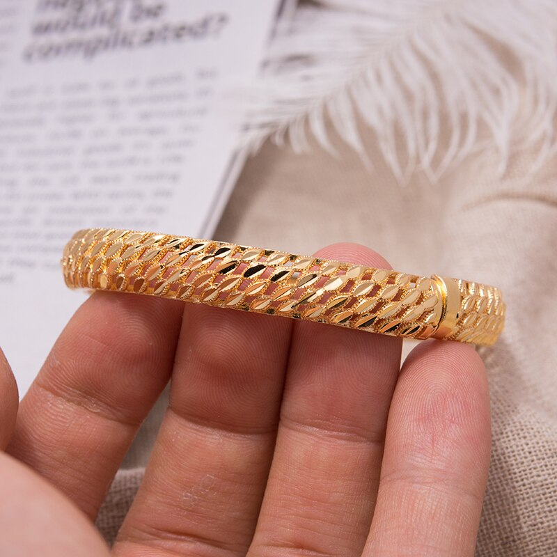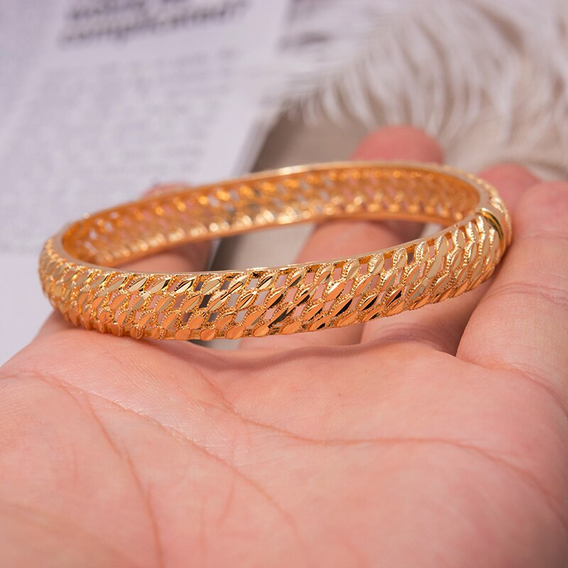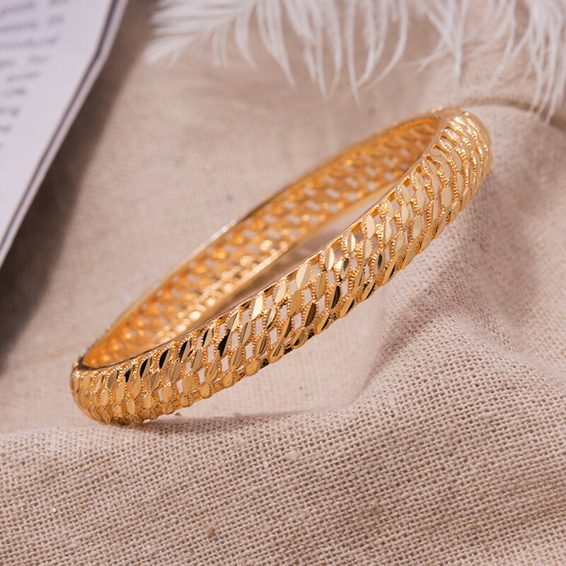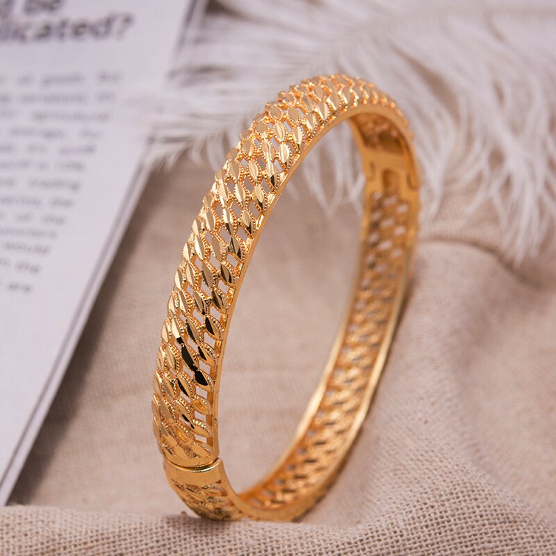 Afraic Jewelry-1PCS Dubai Gold Color bangles for women Wedding Bracelets Bangles Gold Color Bride Bracelet