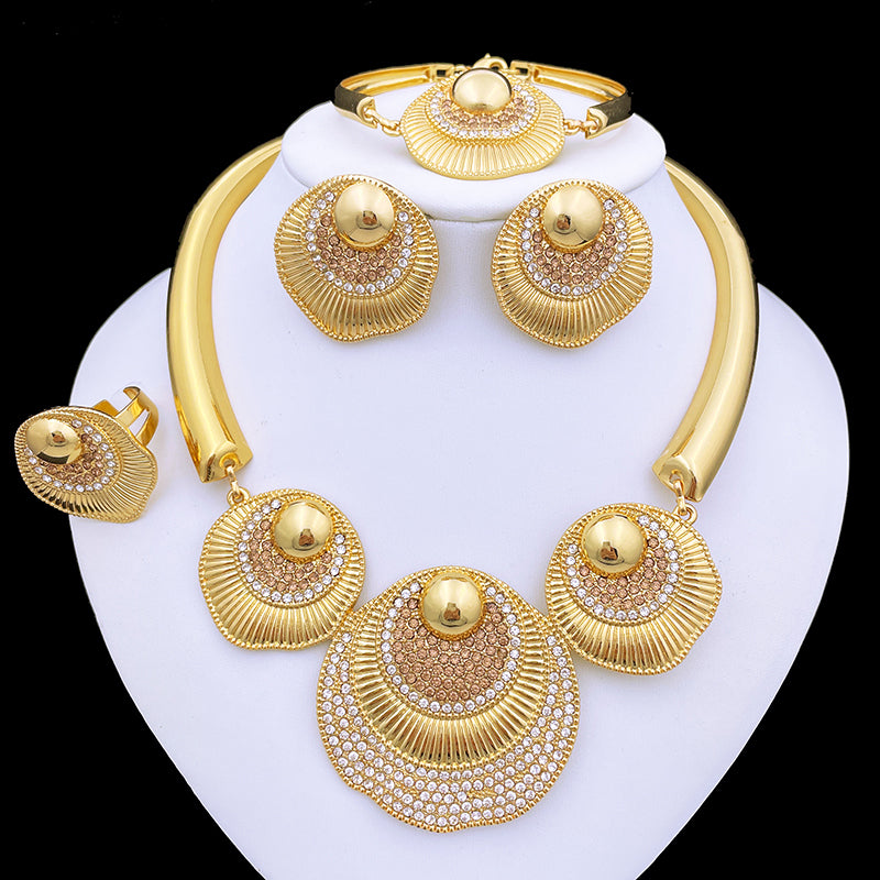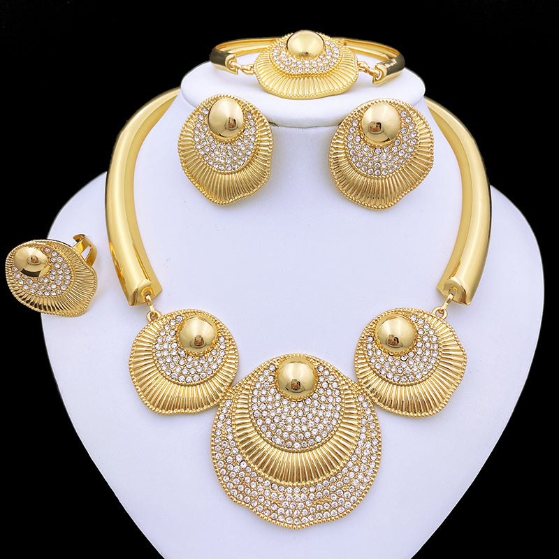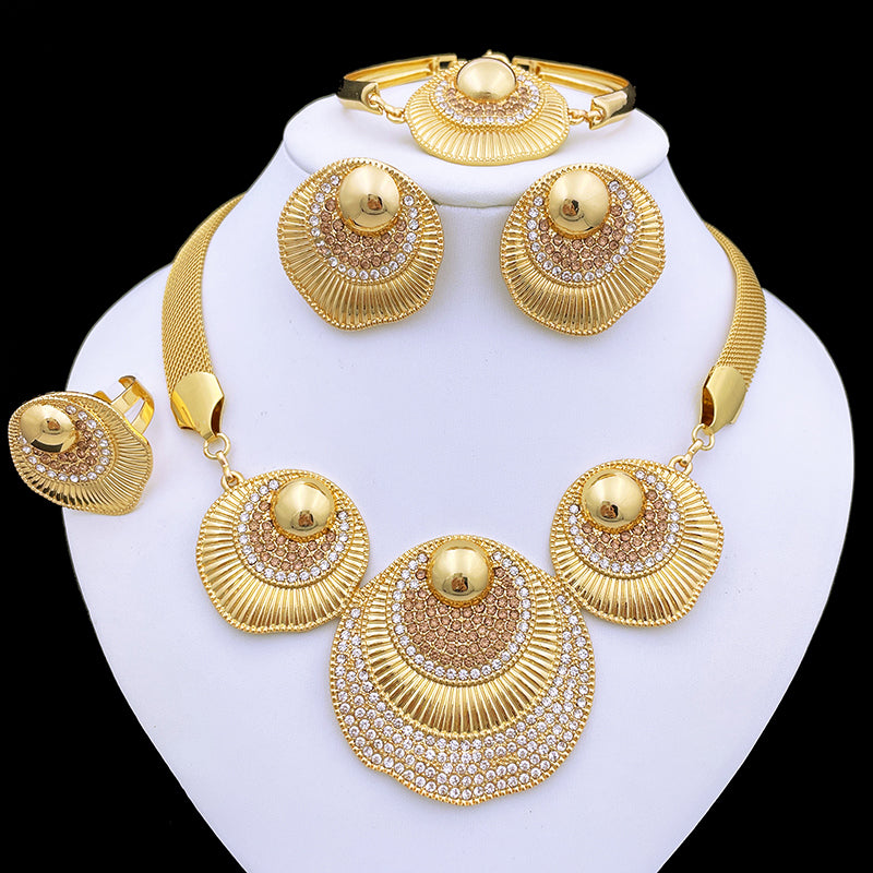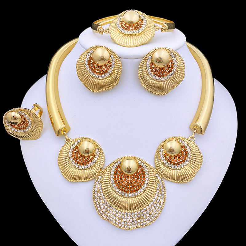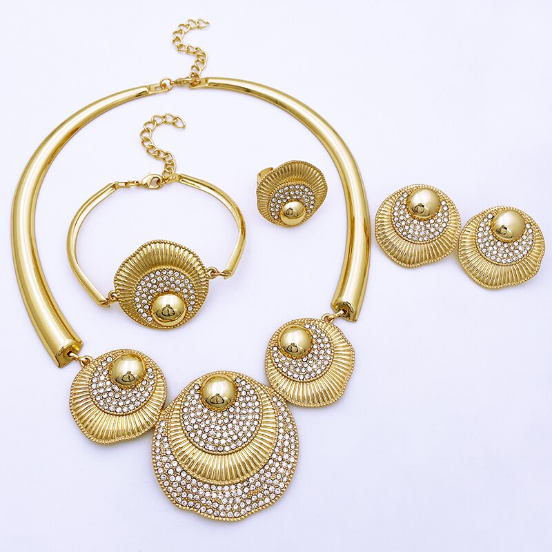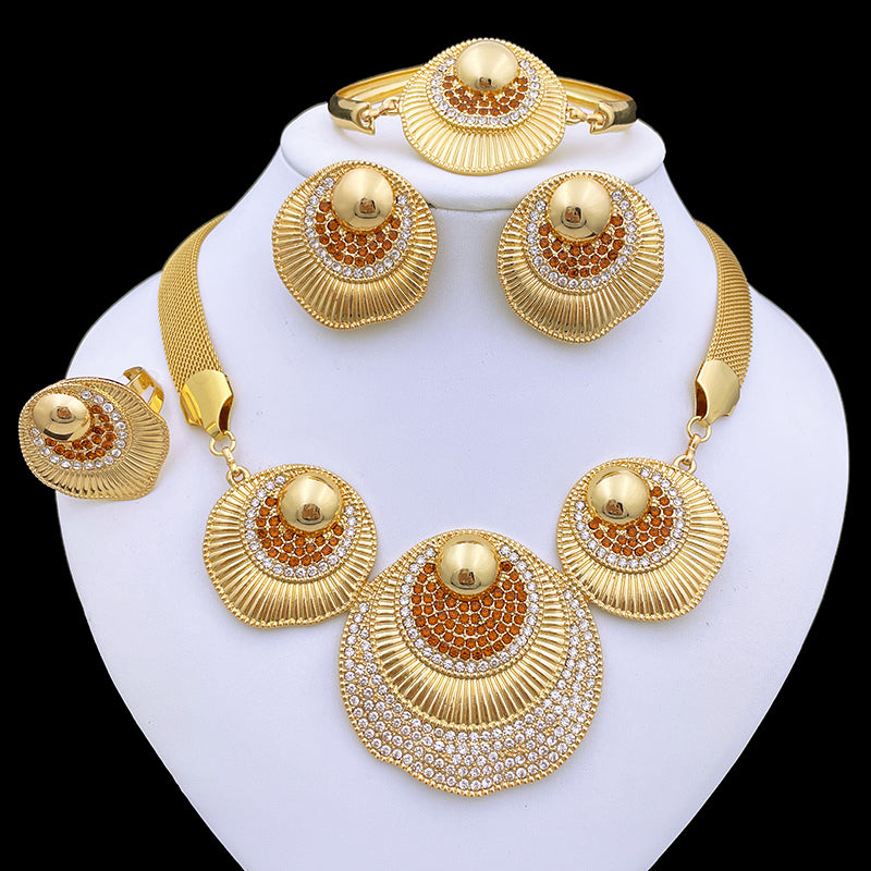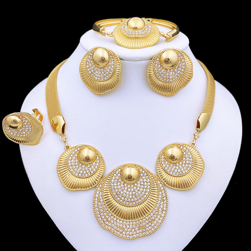 Dubai Gold Color Jewelry Sets Gold Plated Necklace And Earrings For Women
