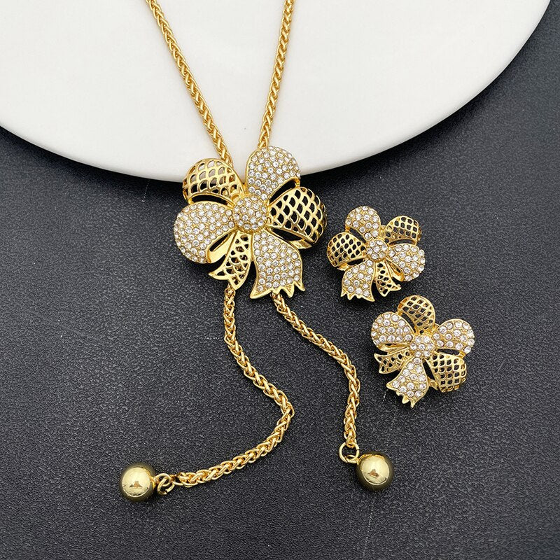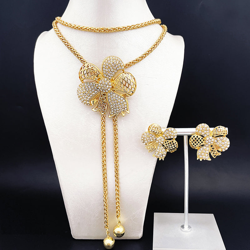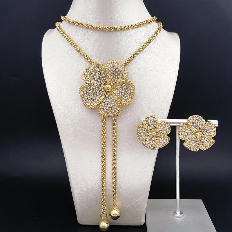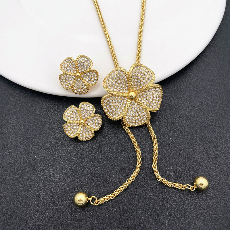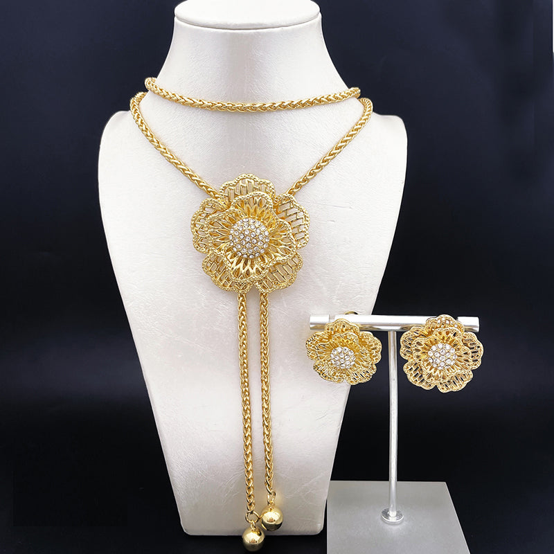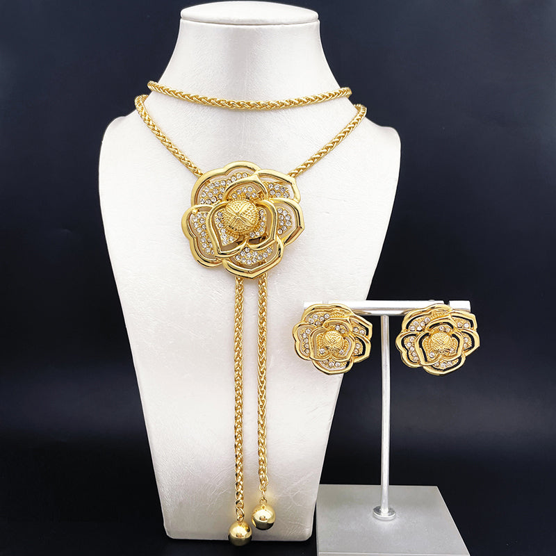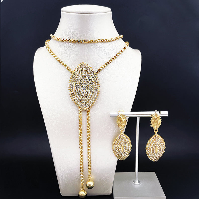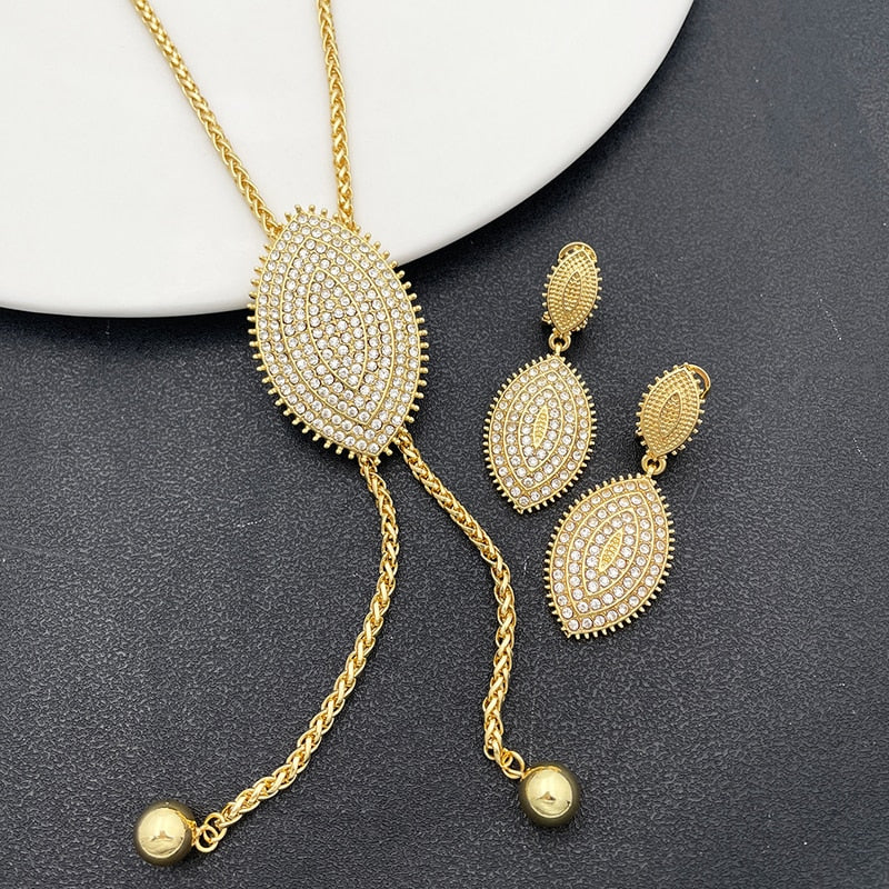 Dubai Gold Colored Jewelry For Women Adjustable Long Chain Necklacet Large Pendant Earrings Set Wedding Party Gift