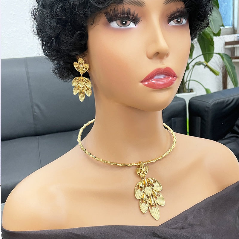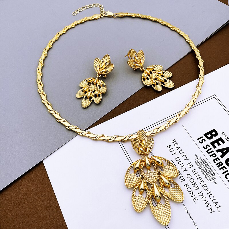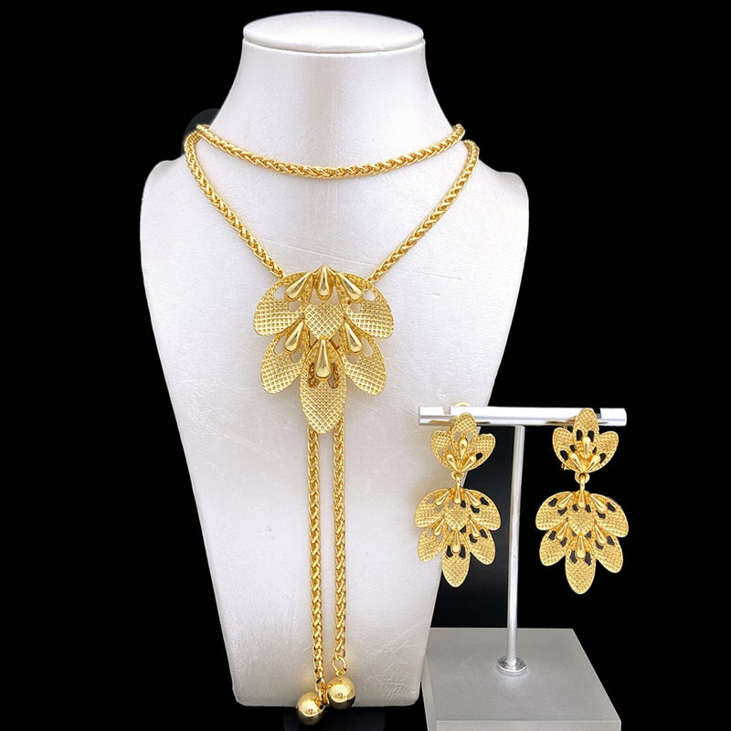 Afraic Jewelry -Dubai Gold Plated Jewelry For Women Long Chain Necklace Butterfly Shape Big Pendant Earrings Set Wedding Party Gift