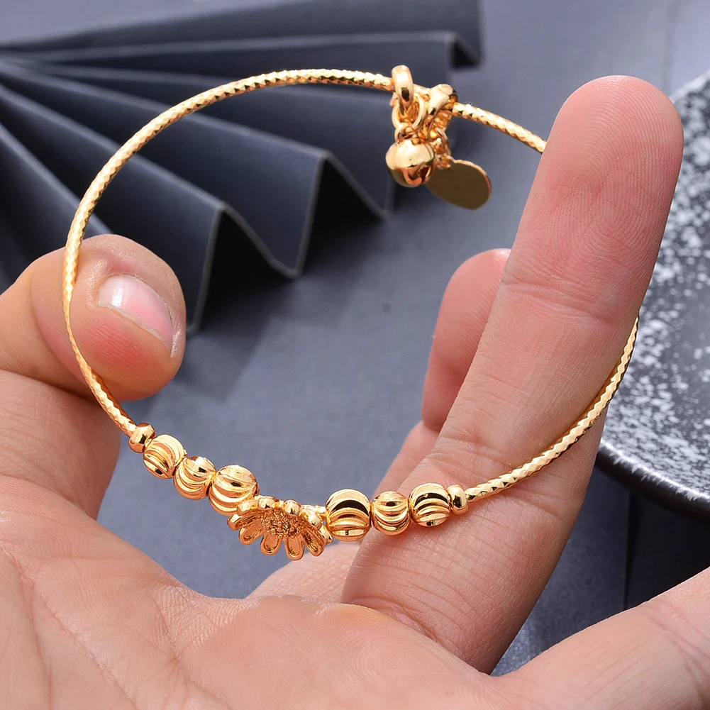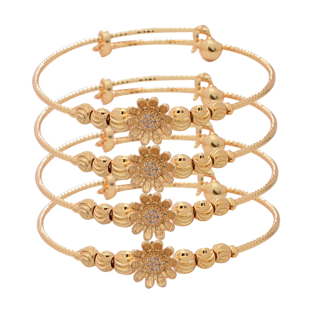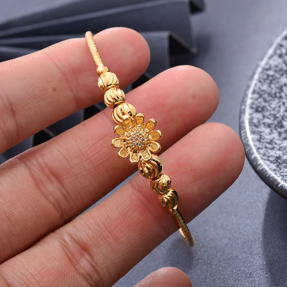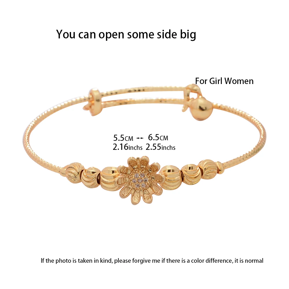 Afraic Jewelry- Dubai Maiden Gold Color zircon Bracelet Bangles Wedding Flower Jewelery Africa Bangles women Flower Bangles Bijoux femme