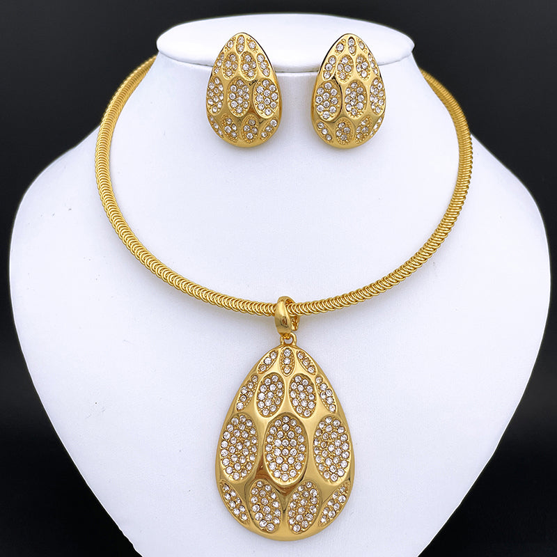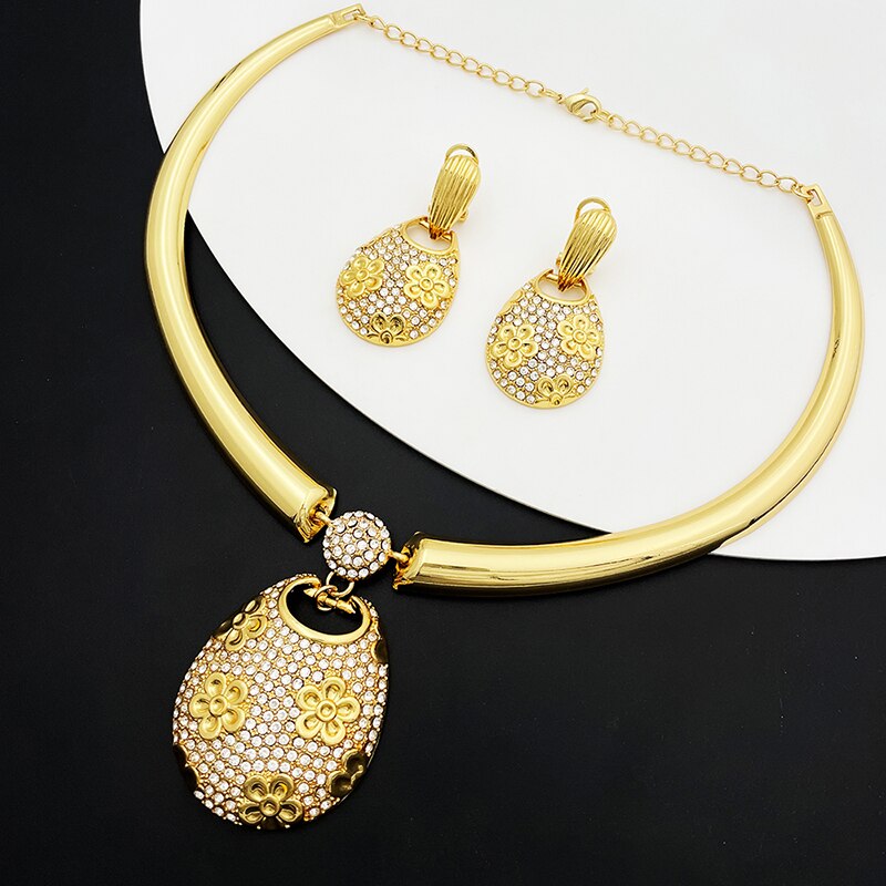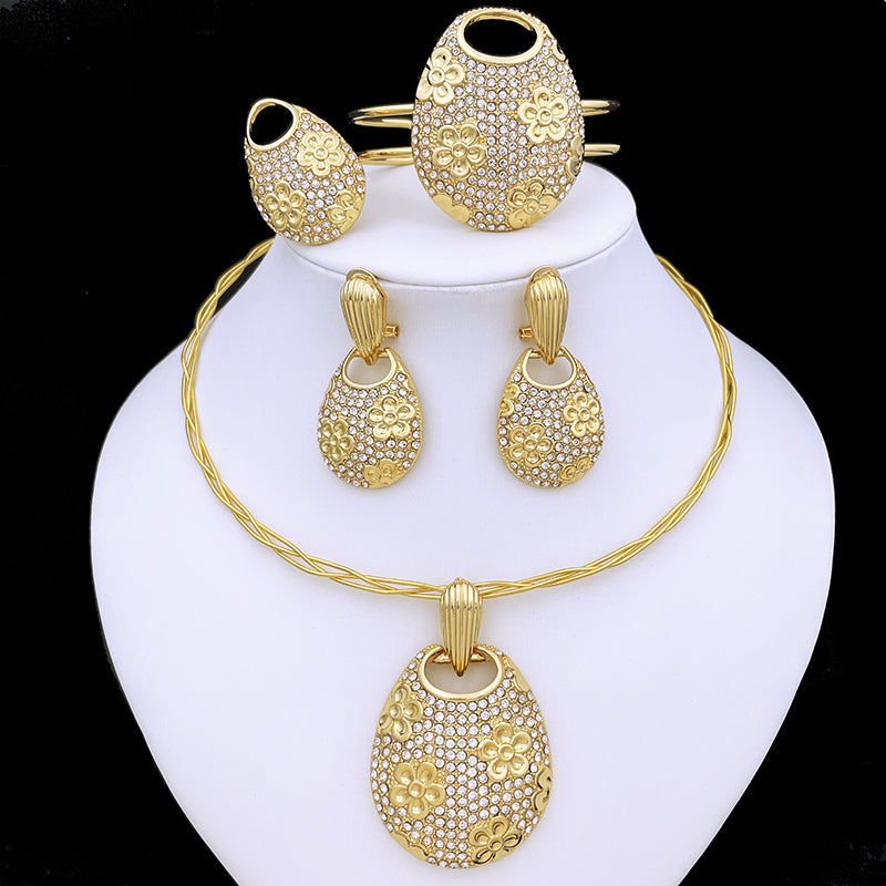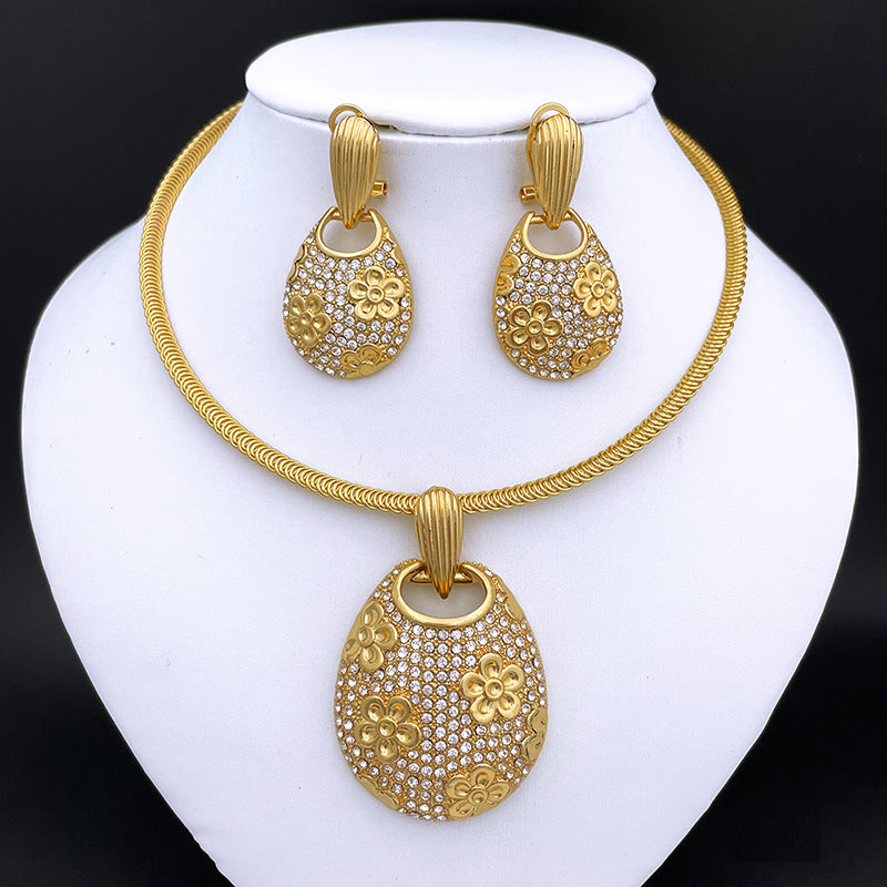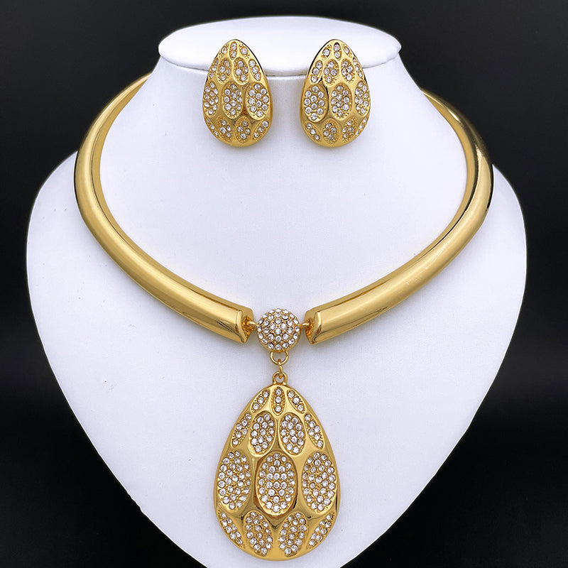 Afraic Jewelry -Dubai Women Necklace Earrings Set Gold Plated Fashion Jewelry Nigeria Bride Jewelry Wedding Party Gifts