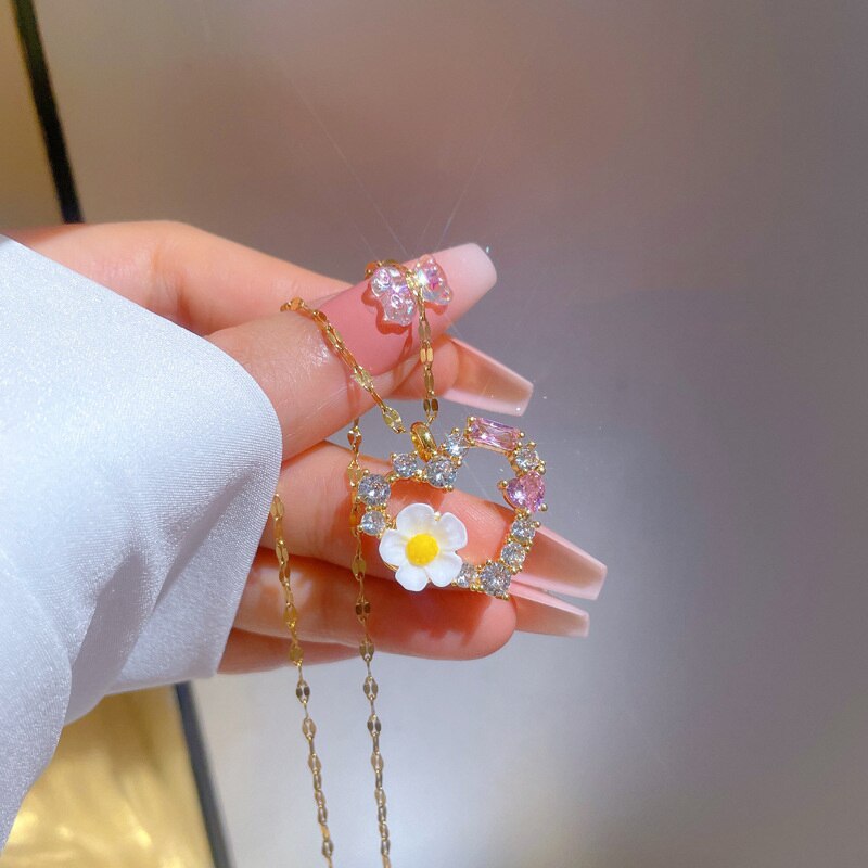585 Gold Jewelry-316L Stainless Steel Elegant Exquisite Flower Big Heart Chain Necklace for Women High Quality Pendant Temperament Jewelry