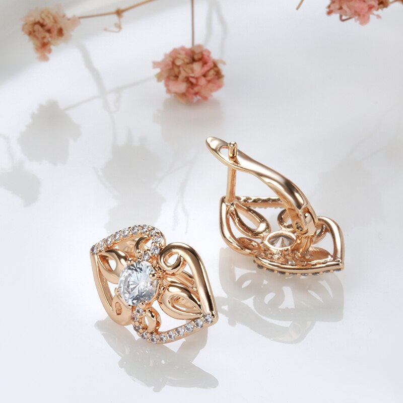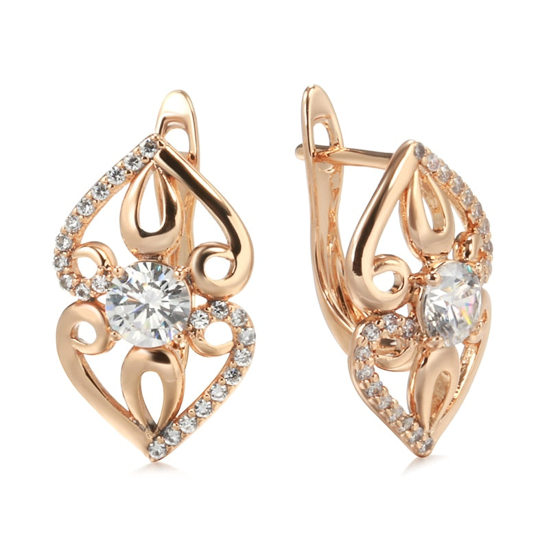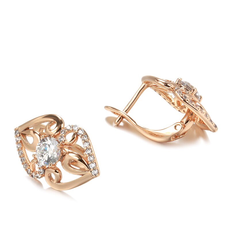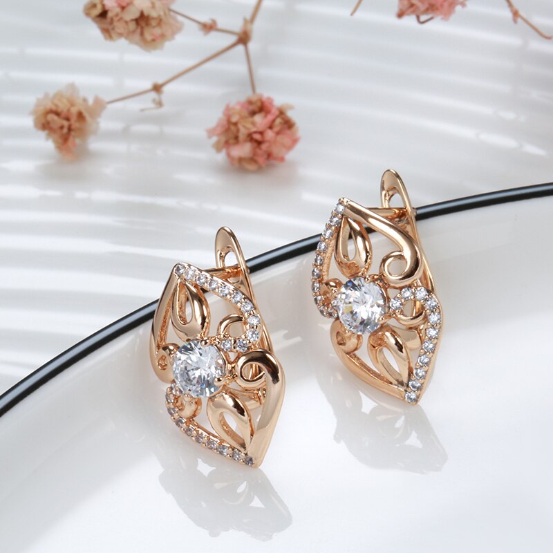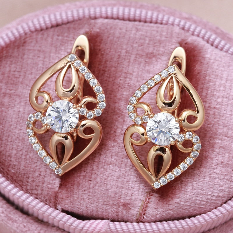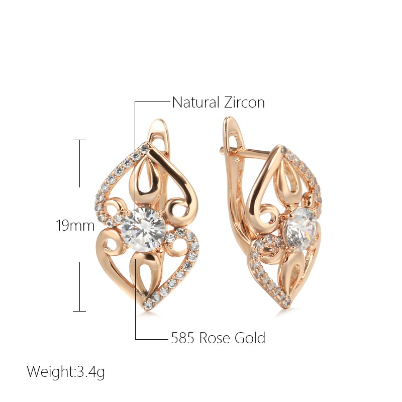 585 Gold Jewelry-Elegant Texture Natural Zircon Women's Dangle Earrings Vintage 585 Gold Party Wedding Earrings Fashion Fine Jewelry