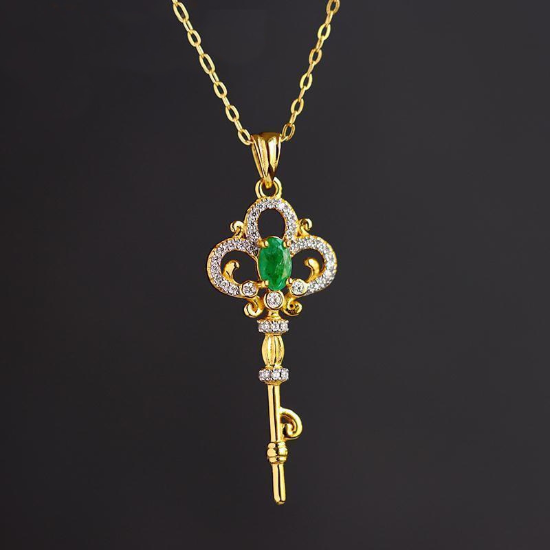 Emerald Crystals Key Pendant Light Luxury Delicate Green Gemstone Necklaces
