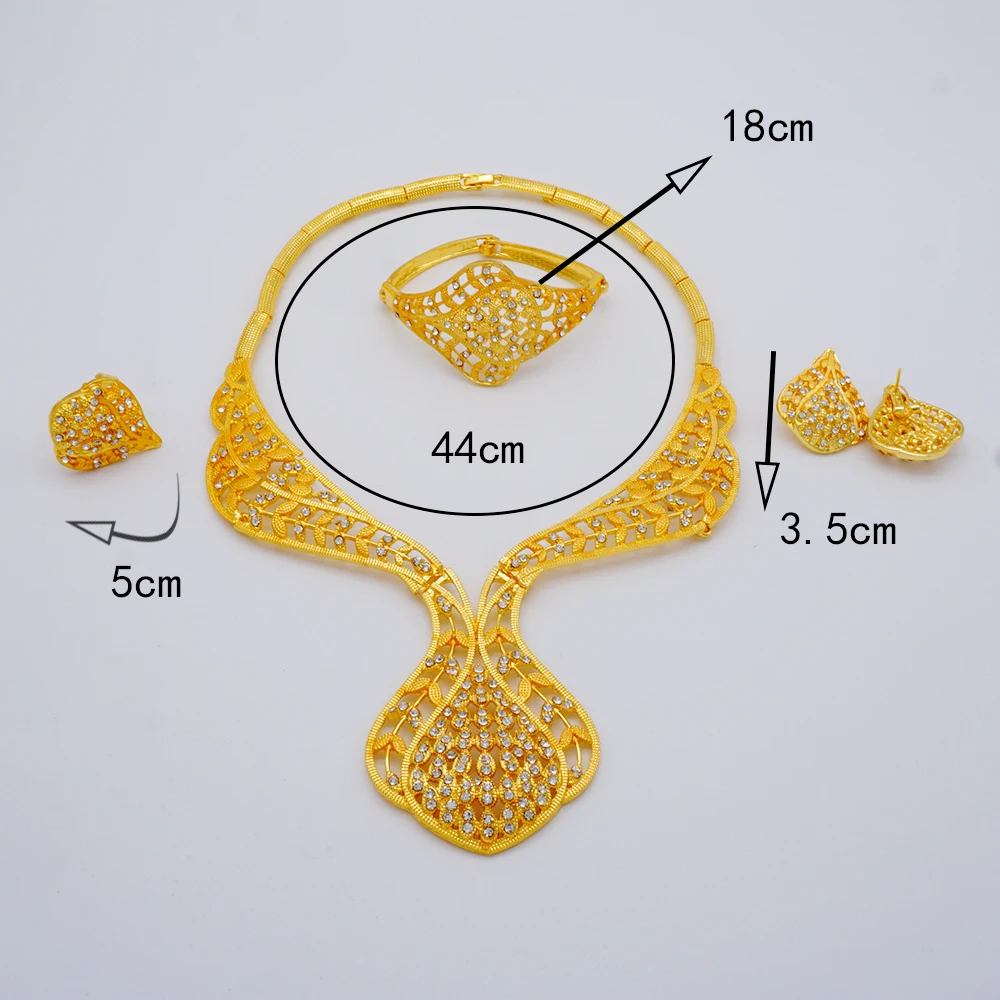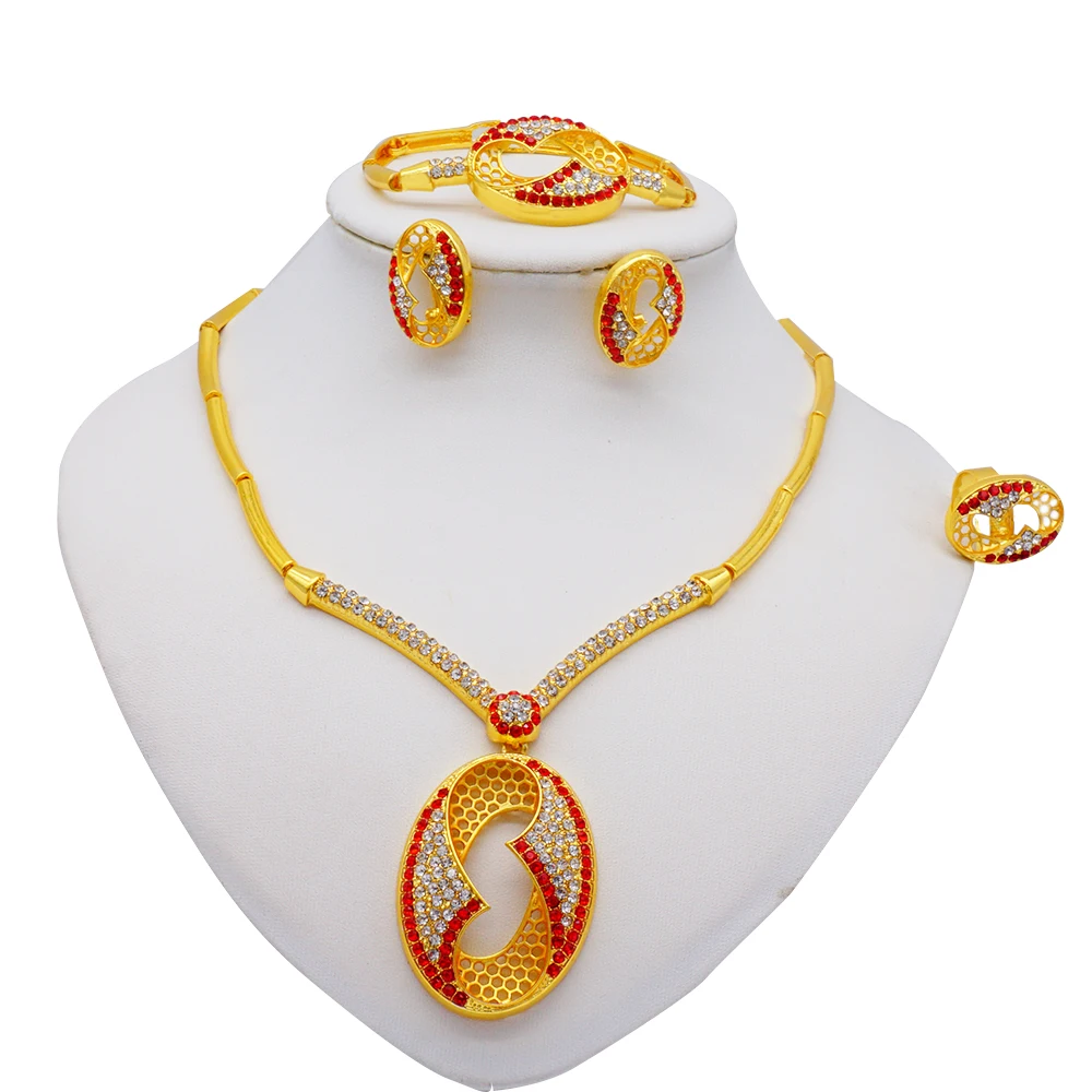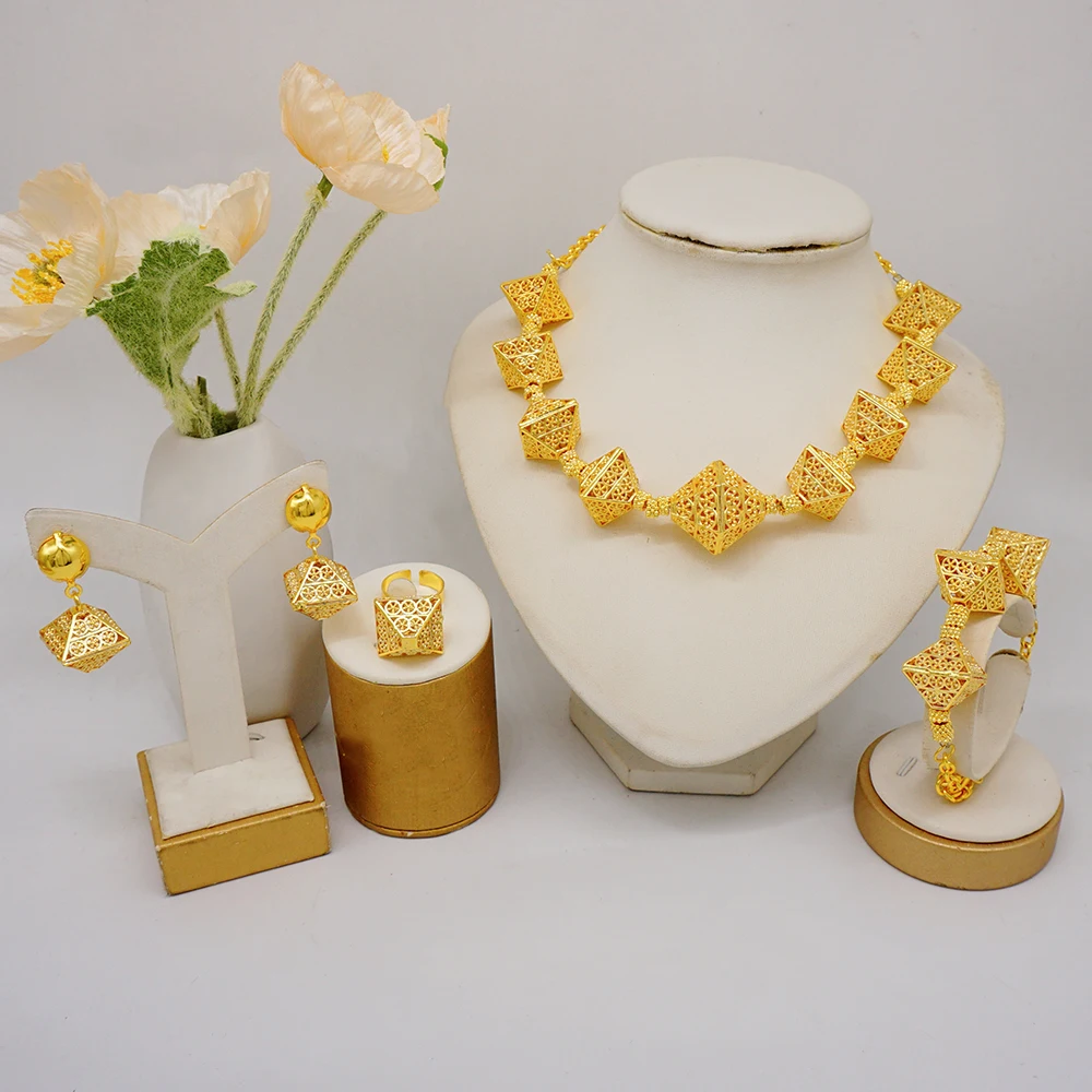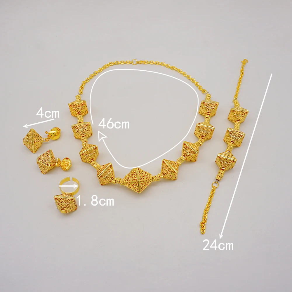 Ethiopia Gold Color Dubai Jewelry Sets Women Wedding Gifts Necklace Earrings Bracelet Ring Jewellery Sets