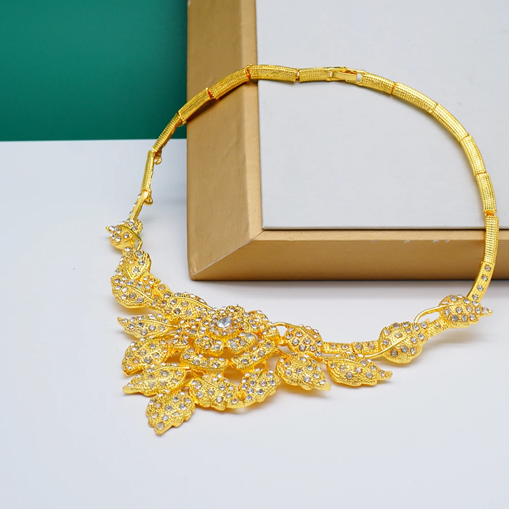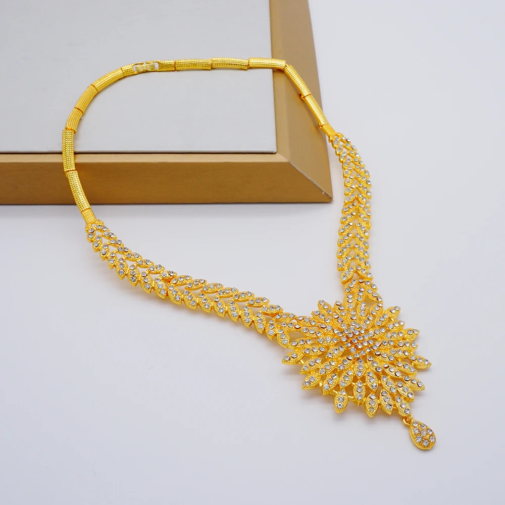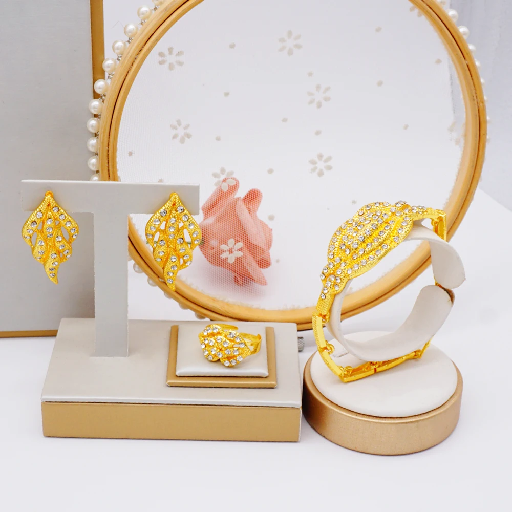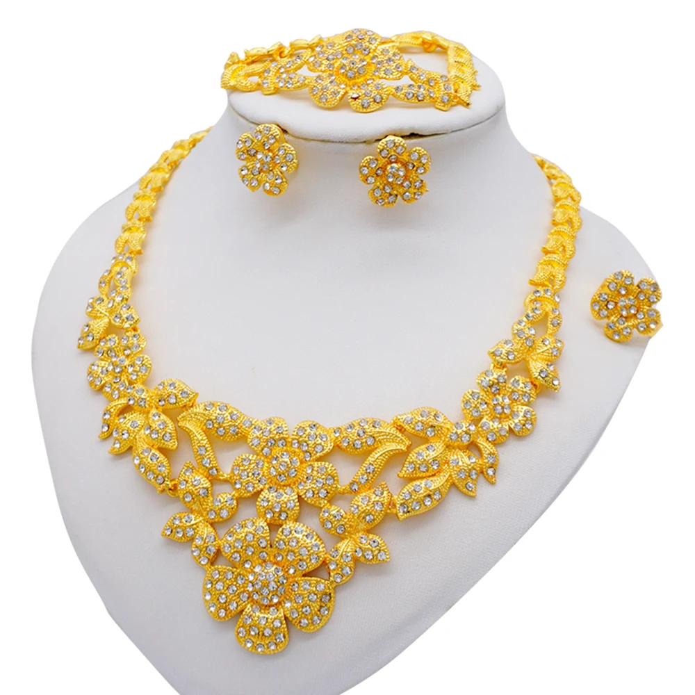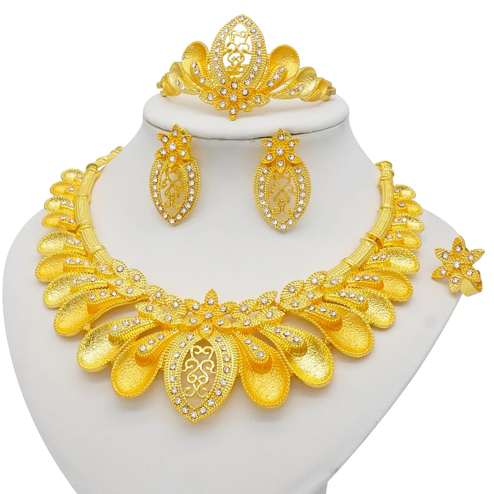 Ethiopia Gold Color Dubai Jewelry Sets Women Wedding Gifts Necklace Earrings Bracelet Ring Jewellery Sets