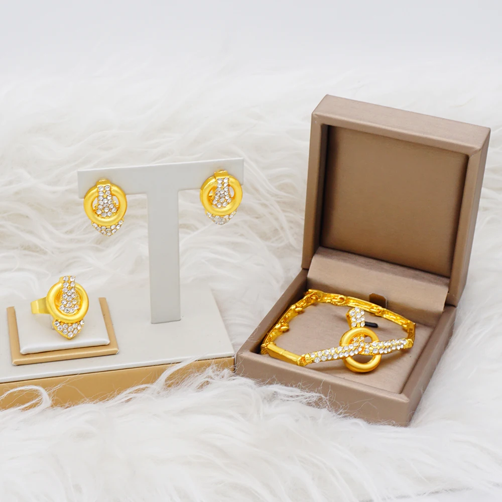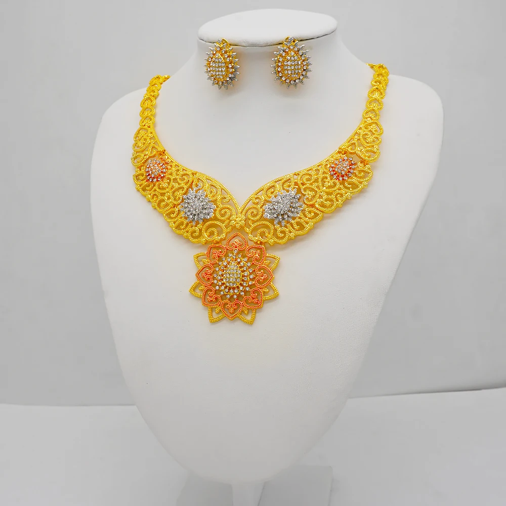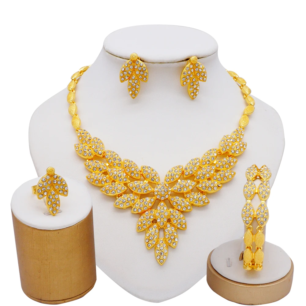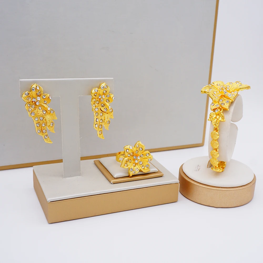 Ethiopia Gold Color Dubai Jewelry Sets Women Wedding Gifts Necklace Earrings Bracelet Ring Jewellery Sets