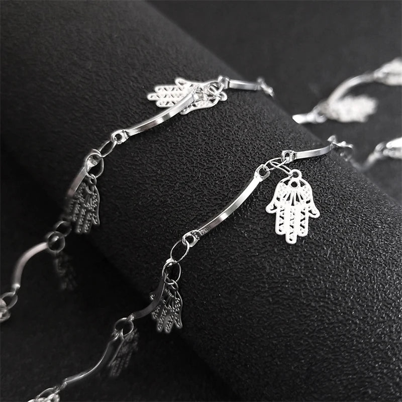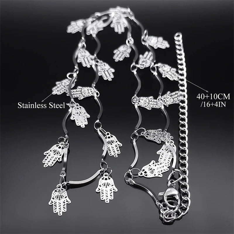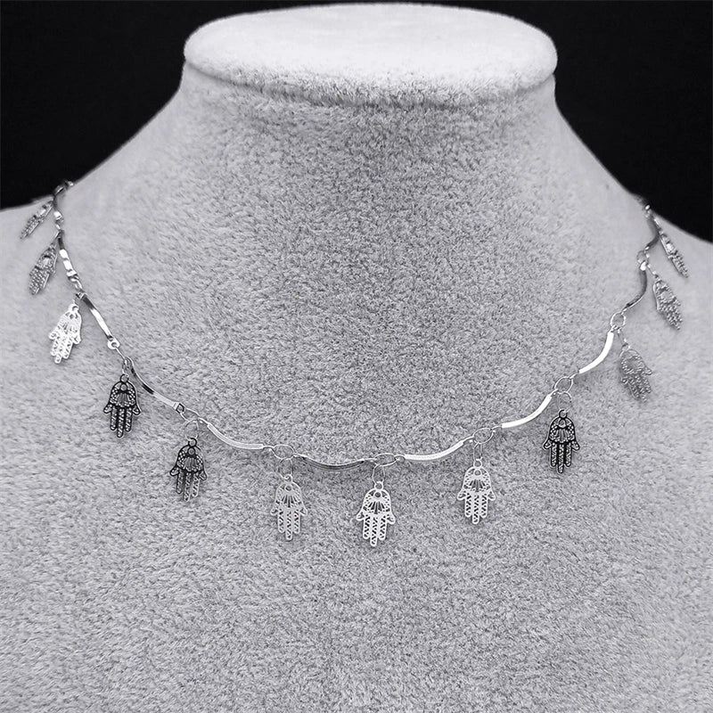 Exquisite Hand of Fatima Hamsa Charm Necklace for Women Men Stainless Steel Silver Color Hollow Chain Jewelry Gift collier