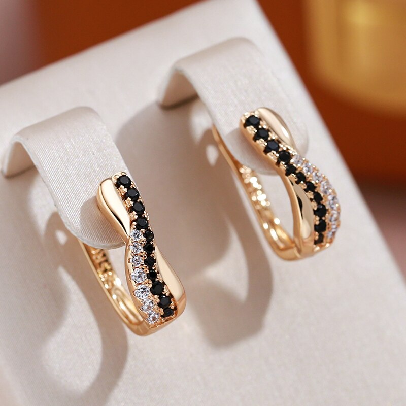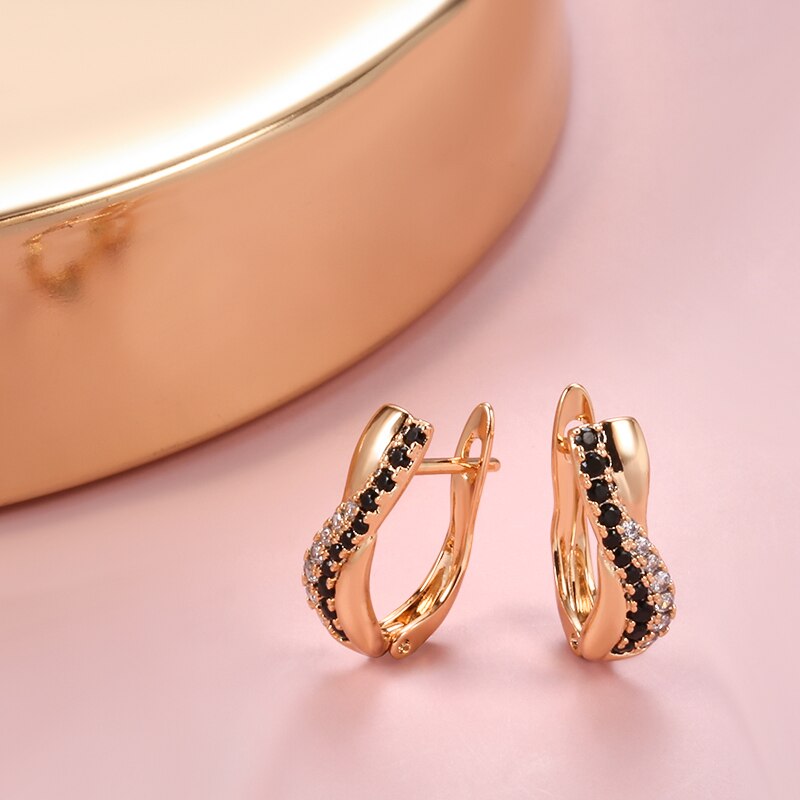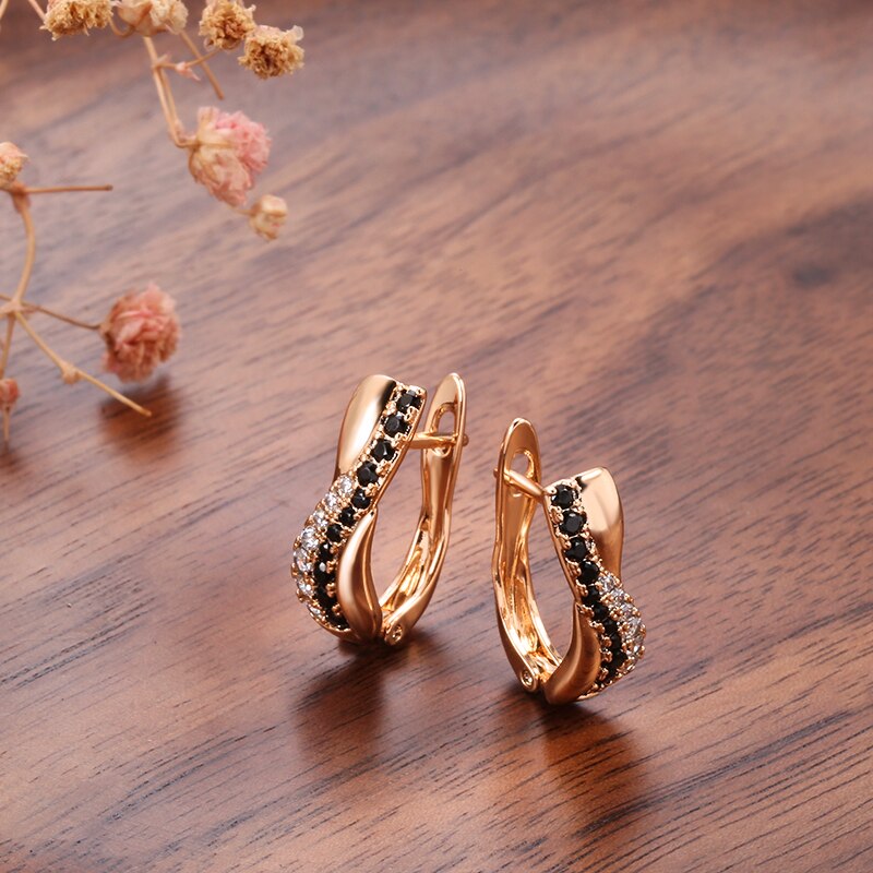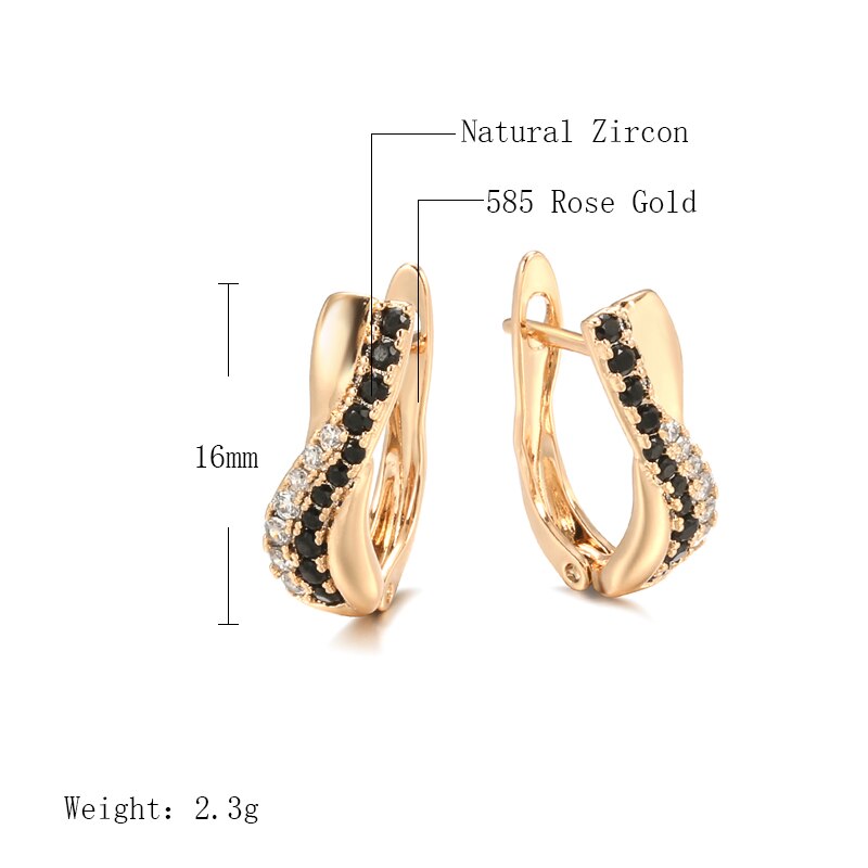 585 Gold Jewelry-Fashion Black Zircon Cross Drop Earrings for Women 585 Gold Color Luxury Vintage Wedding Jewelry Girls accessories
