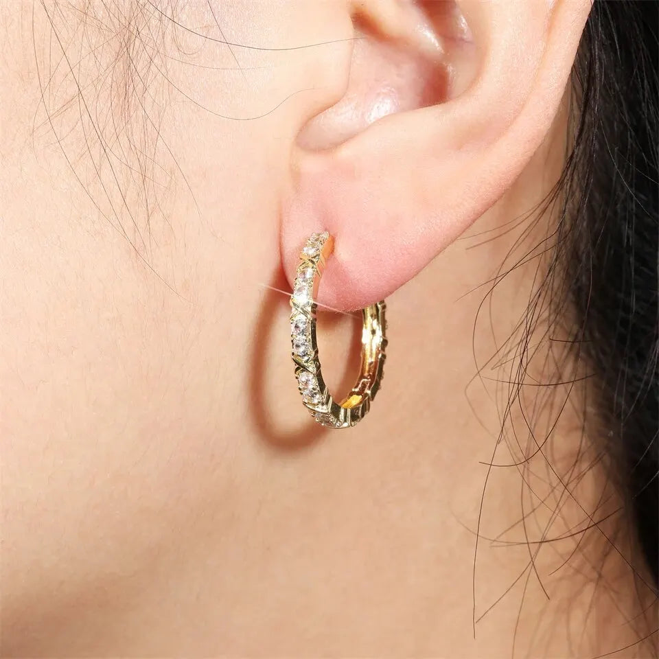 Fashion Cubic Zirconia Gold Color Silver Color Round Earrings For Women Crystal Copper Stud Earring Party Daily Jewelry.