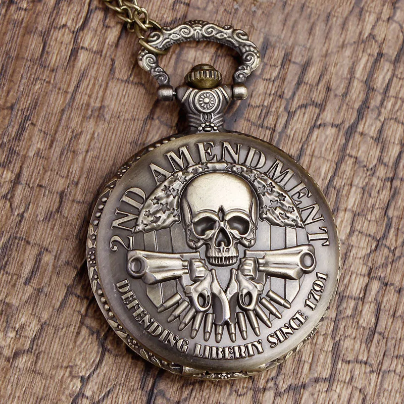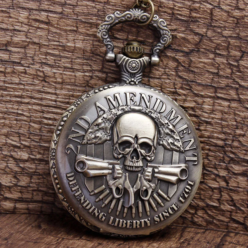 Pocket & Fob Watches-Fashion DEFENDING LIBERTY SINCE 1791 2nd AMENDMENT MILITARY Gun Skull Quartz Necklace Mens Women Pocket Watch Gifts