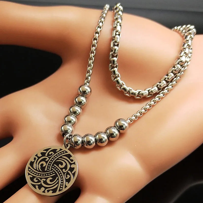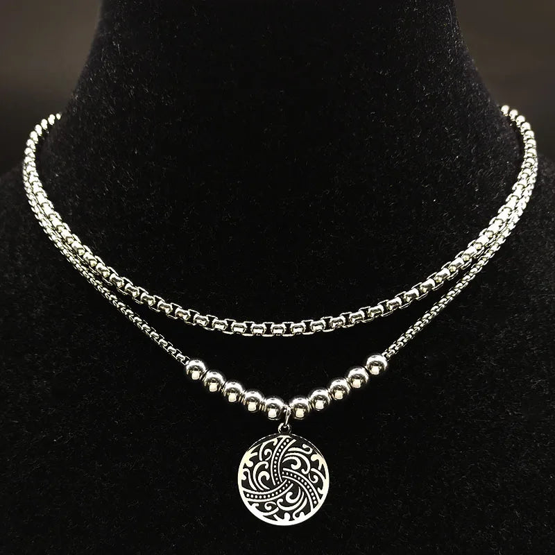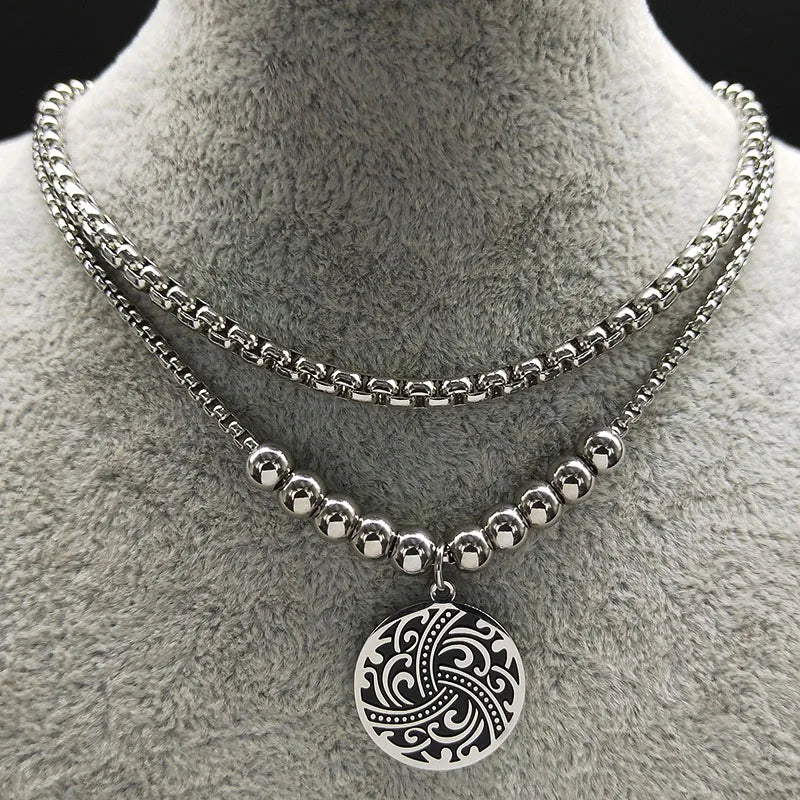 Style:Fashion Double Stainless Steel Chain Necklace
