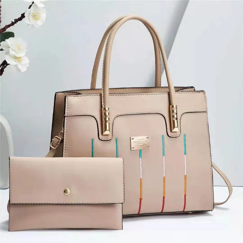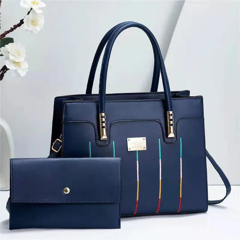 Fashion Embroidered Lines Composite Bag Business Portable Tote Handbag PU High Capacity Shoulder Crossbody Bag for Women