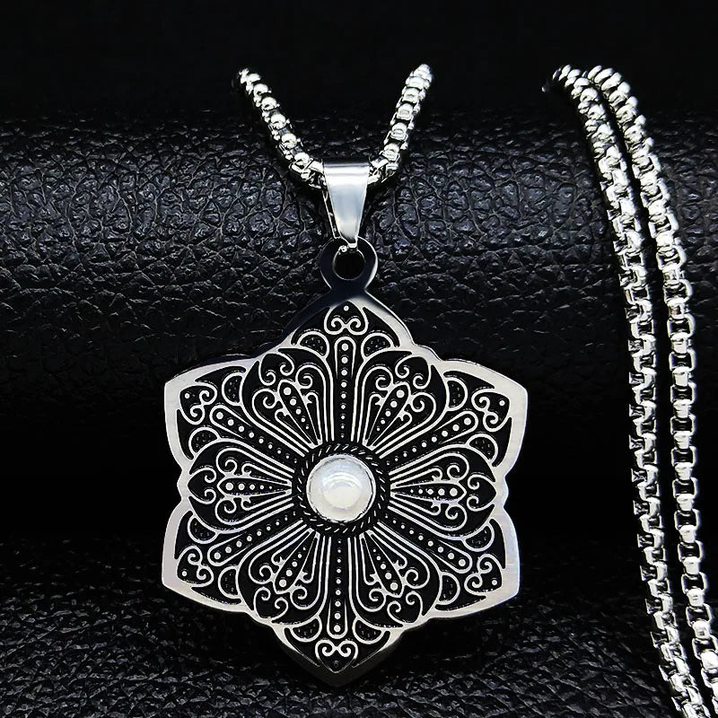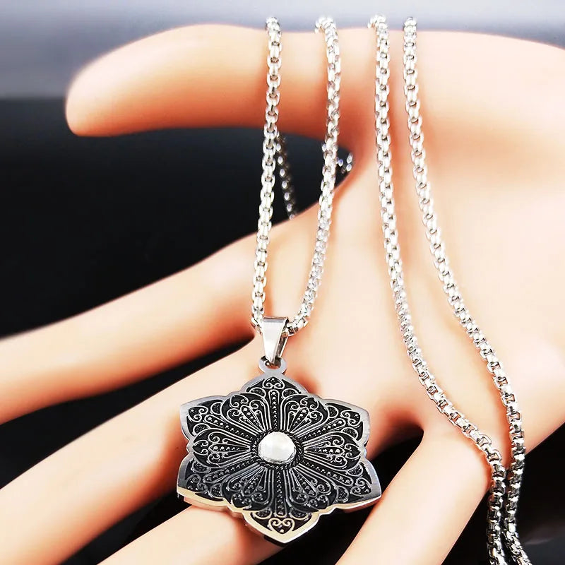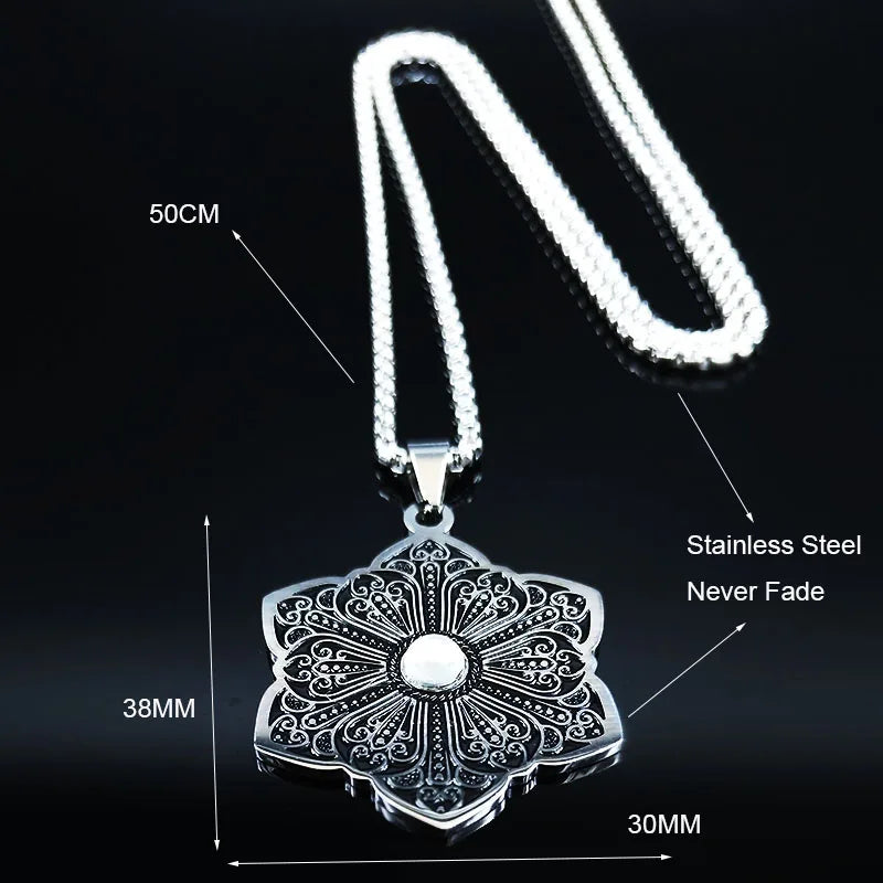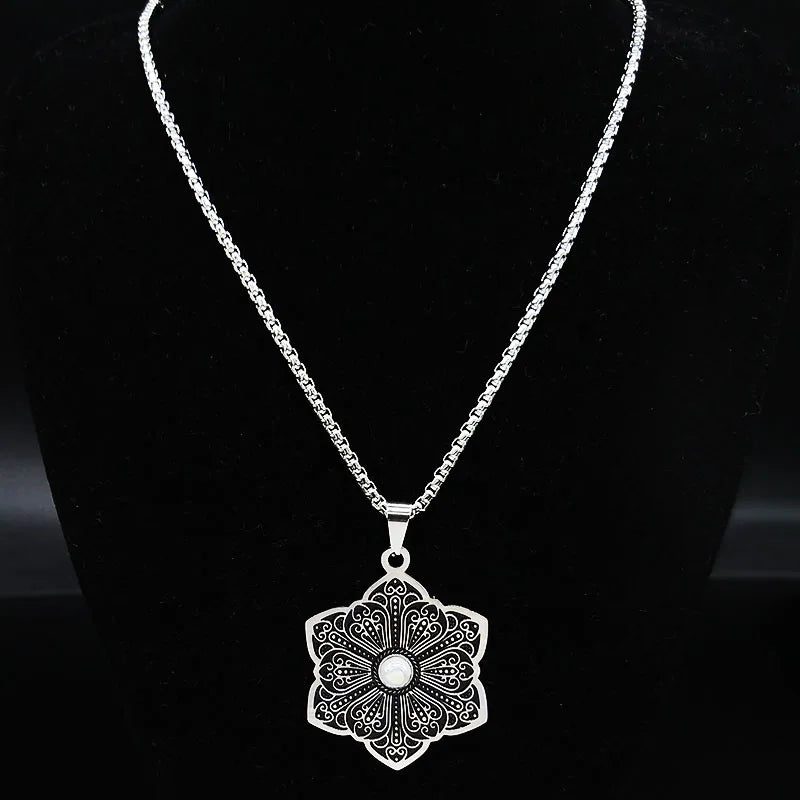 Fashion Flower of Life Stainless Steel Chain Necklace for Women Silver Color Necklace