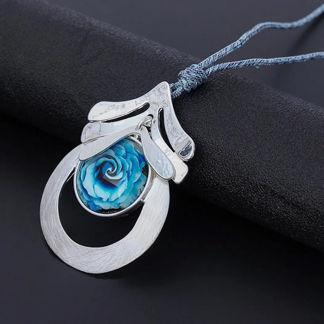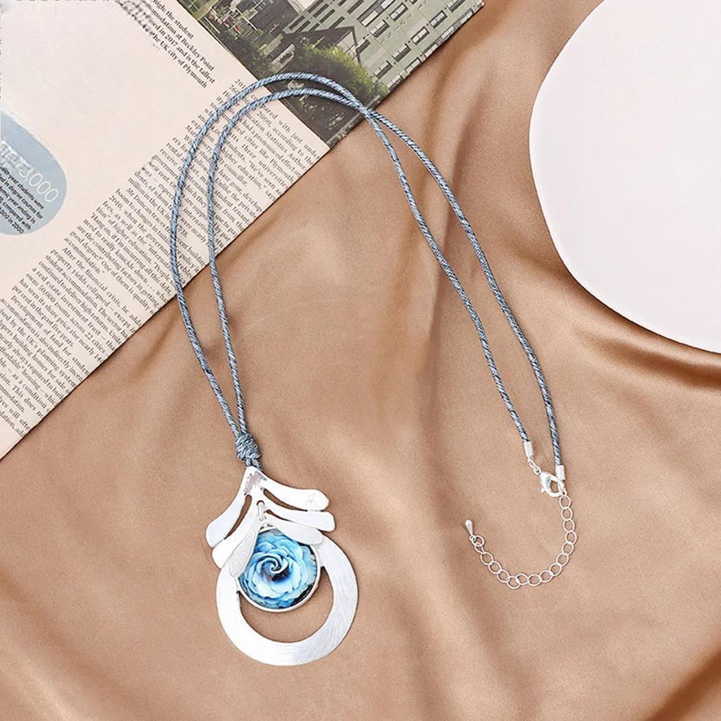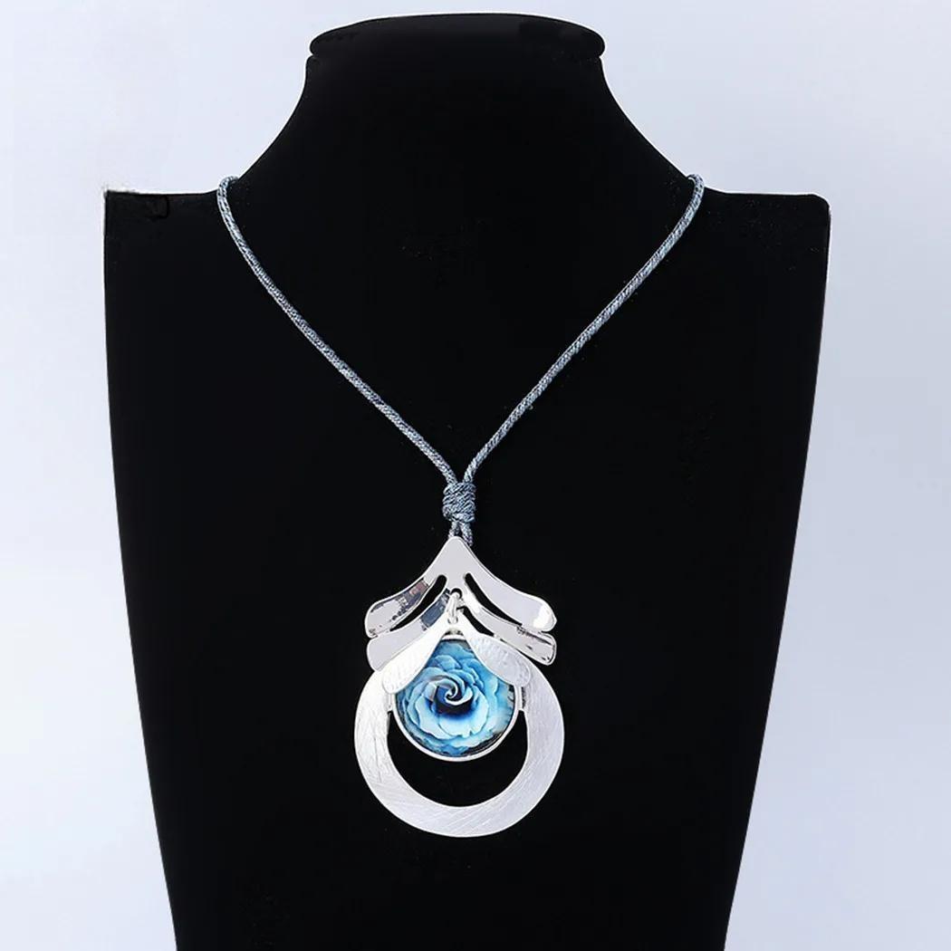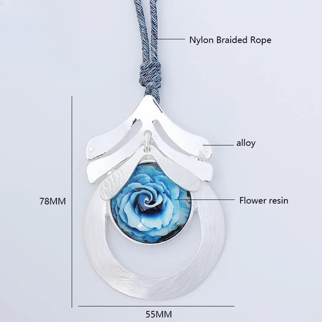 Fashion Geometric Necklace with Blue Resin Flower Collares Suspension Pendants Vintage Goth Jewelry for Women Trending Products