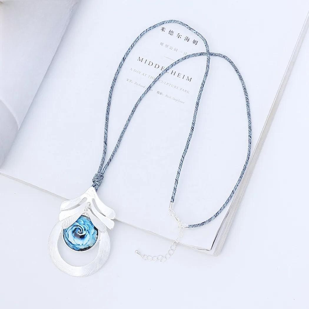 Fashion Geometric Necklace with Blue Resin Flower Collares Suspension Pendants