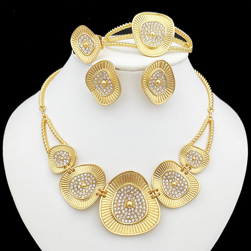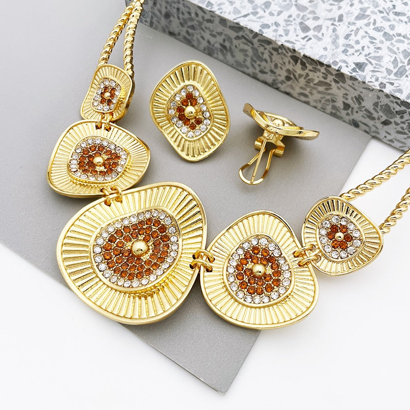 Fashion Jewelry Jewelry Sets Gold Plated Necklace Earrings For Women conjunto de joyas de collar de novia