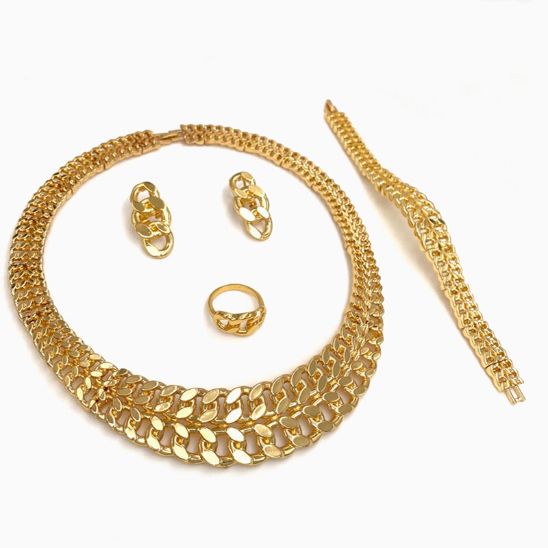 HOT Selling Dubai Fashion Luxury Gold Plated Jewelry Sets African Necklace Bracelet Earrings For Women Wedding Party 083